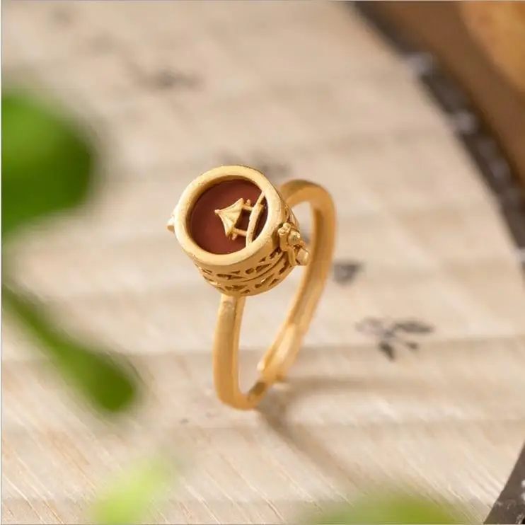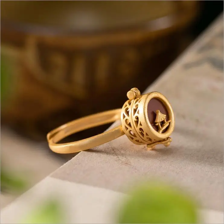 Натуральное зеленое кольцо, покрытое серебром, павильон из красного агата для статуи Будды, Открытое кольцо, можно открыть