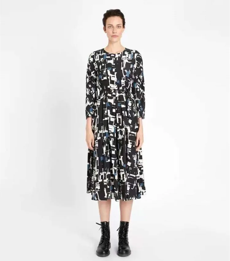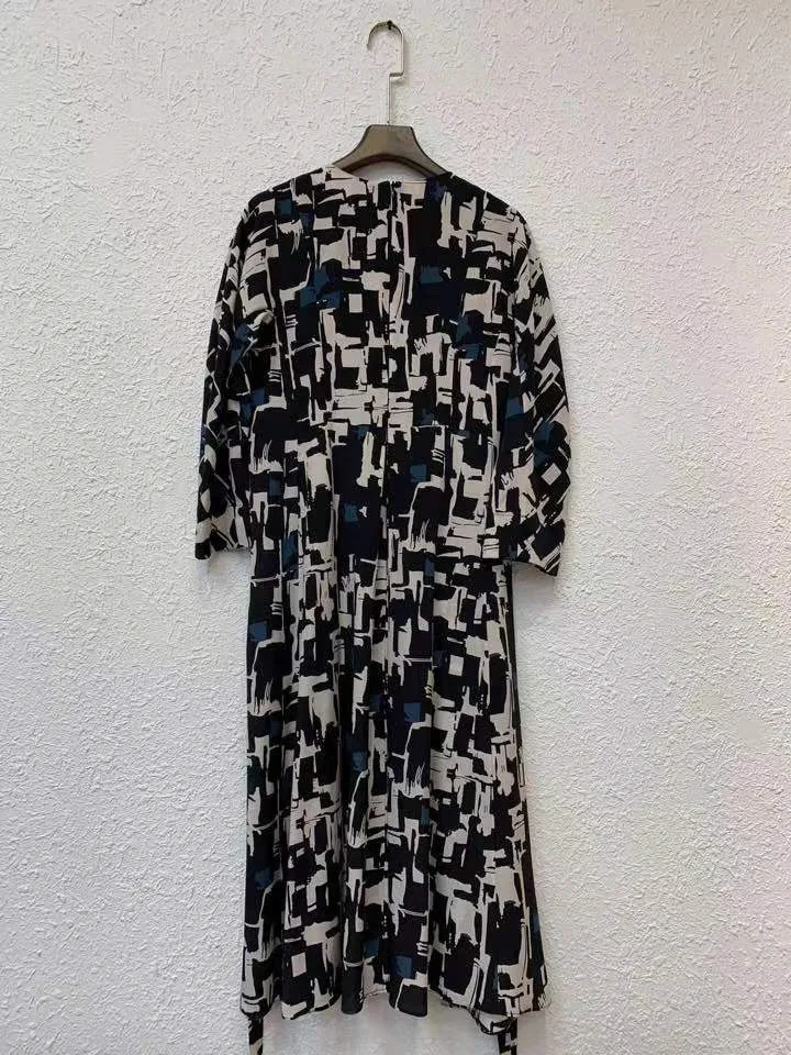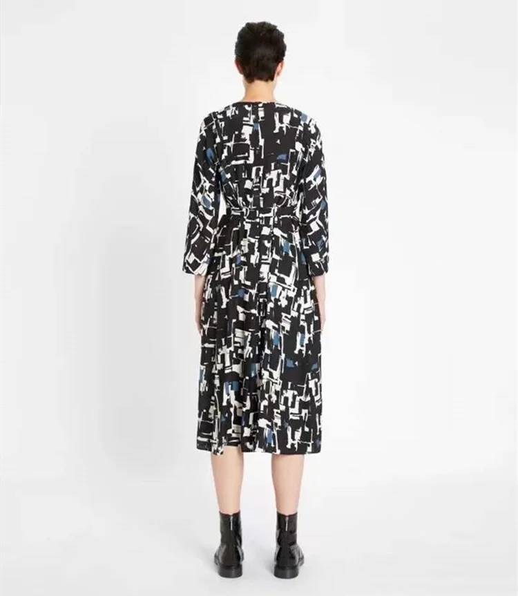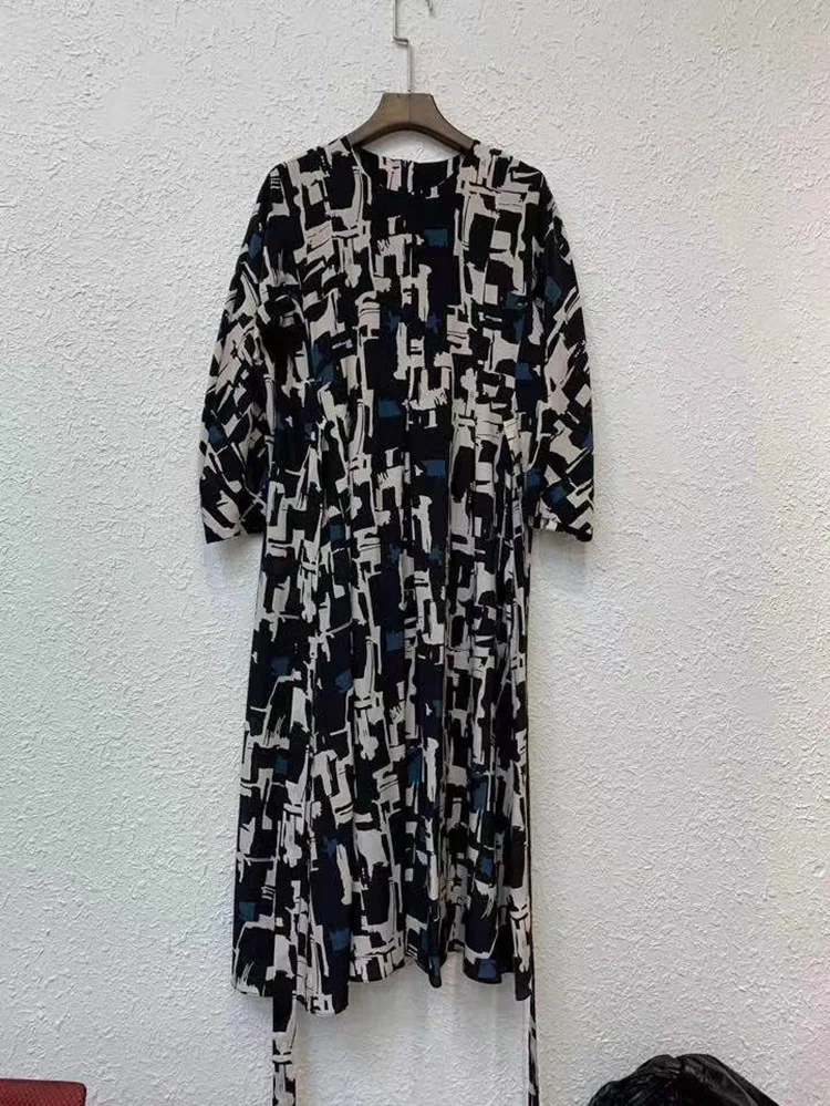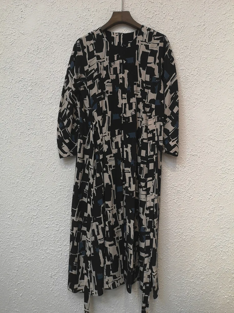 Женское платье из шелка тутового шелкопряда с круглым вырезом и длинными рукавами, весна 2022, модное платье из сатина и крепа с принтом