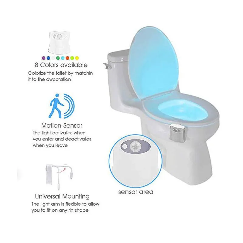 Светодиодный светильник для туалетаОписание:Материал: abs свет Источник: напряжение водить: 4,5 прочный: 1WLight Цвет: 16-Цвет Источник питания: 3x AAA батареи (не входят в комплект поставки) Особенности: движения sensorSense расстояние: 2 метраПосылка: модель A: унитаз на батарейках x 1