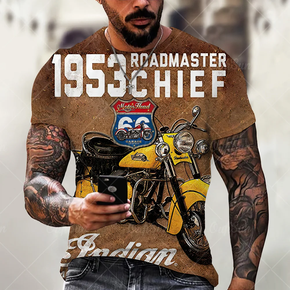 Мужская футболка с коротким рукавом, модная футболка rote 66 с мотоциклом 3d для мужчин, Винтажная летняя одежда