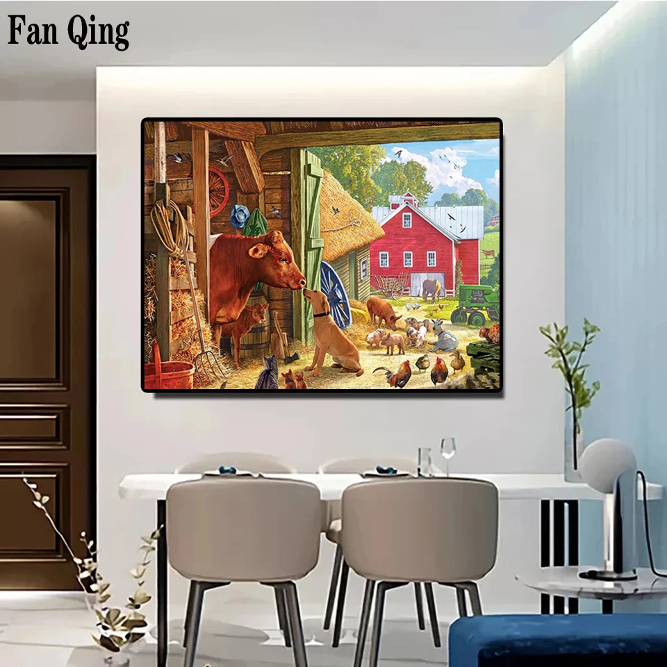 5d алмазная живопись на ферме сделай сам, полноразмерная или круглая вышивка с кристаллами в виде коровы, собаки, курицы, картина для домашнего декора