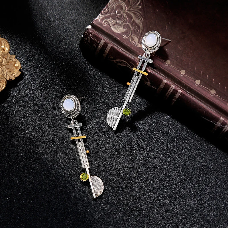 Серьги-подвески женские, с белым лунным камнем, винтажные, серебрис...