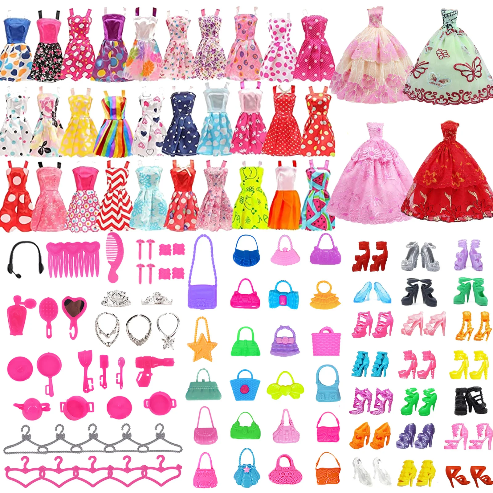 97 шт.компл. Барби Кукла Одежда ручной работы Кукла наряд обувь сумки ожерелье аксессуары для 6,3-дюймовых Барби и шарнирных кукол игрушка для девочек