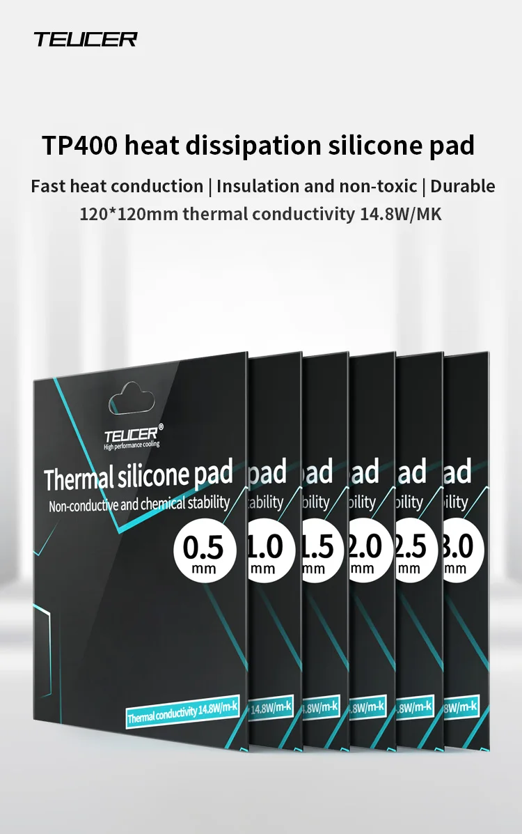 Термоподушка TEUCER, мягкая силиконовая прокладка для рассеивания тепла, графическая карта ЦПГП, материнская плата, силиконовая смазка, многоразмерная 14,8 ВтмК