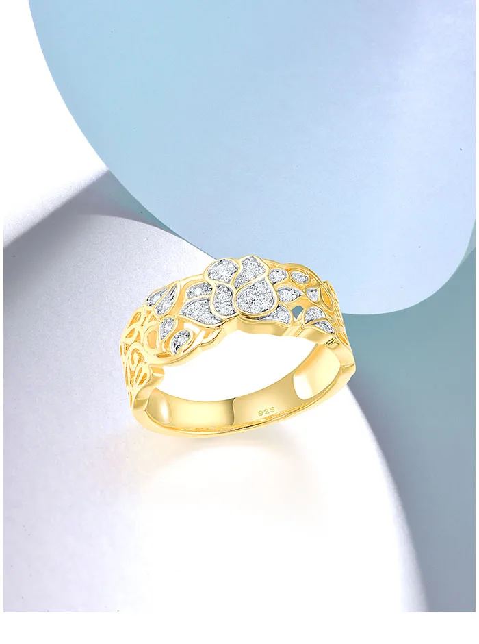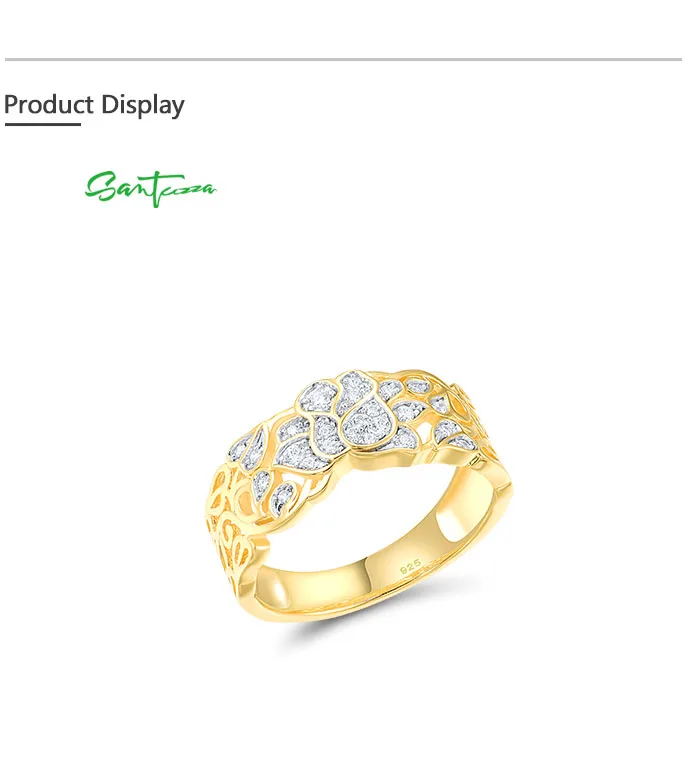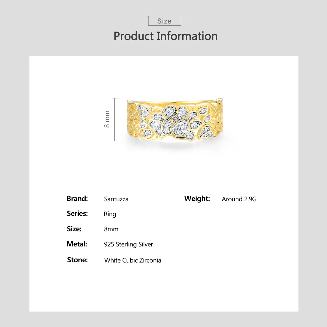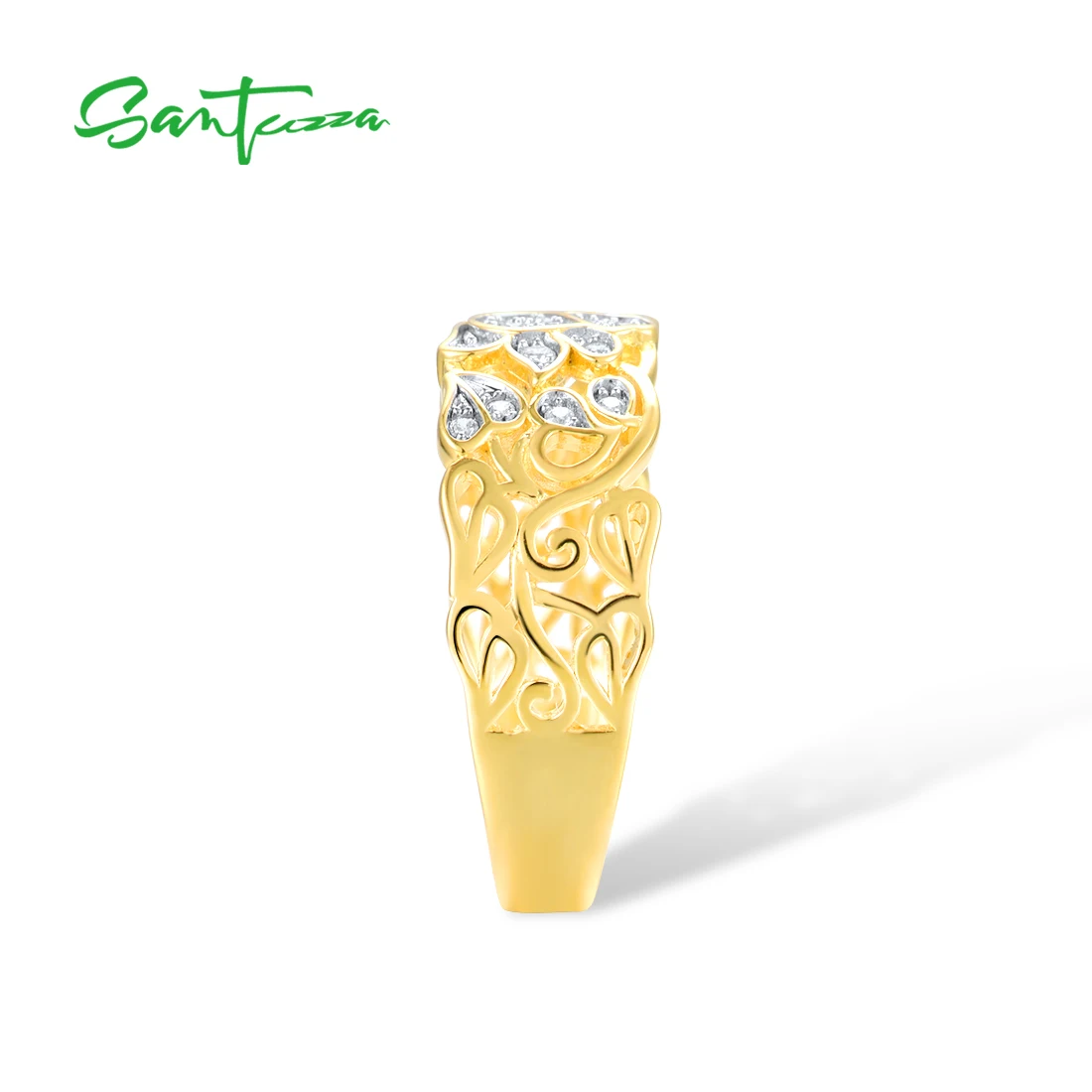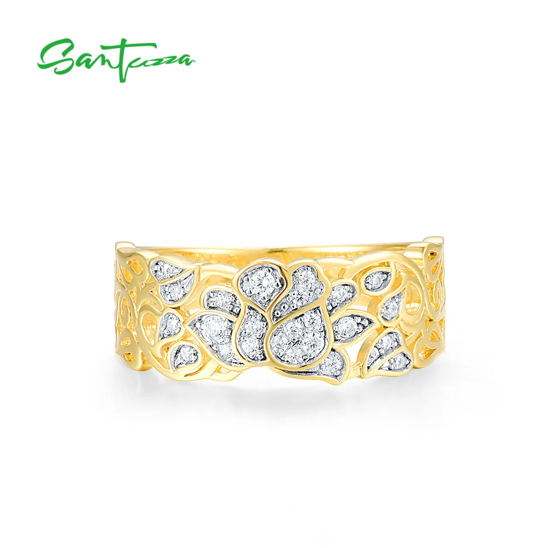 Женское кольцо SANTUZZA, из серебра с блестящим белым кубическим цирконием и полым цветком лотоса, элегантные ювелирные украшения