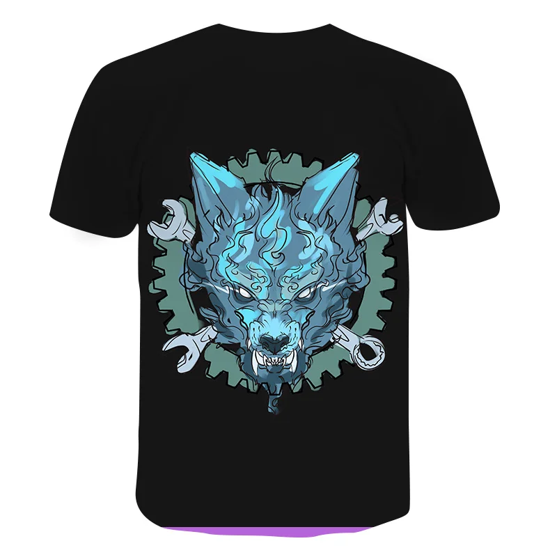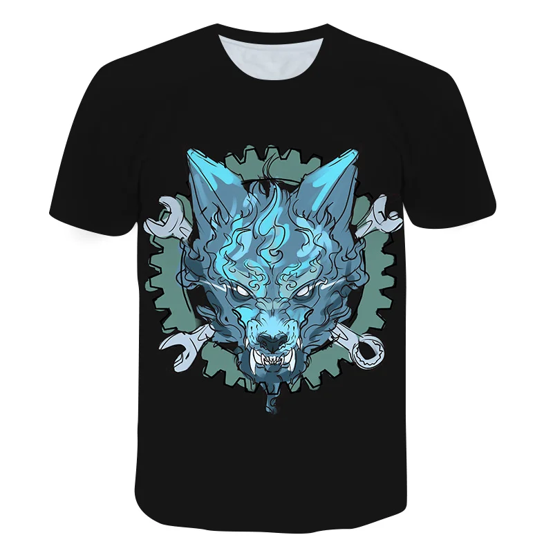 Мужская рубашка с коротким рукавом и круглым вырезом, Повседневная летняя рубашка с 3D-принтом волка для мужчин, одежда в стиле хип-хоп