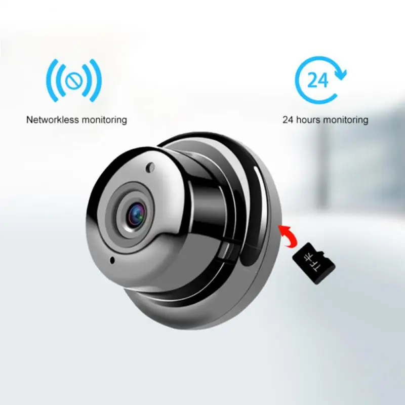 Легко в любом месте! Эта маленькая камера с жестким зарядным кабелем и базой, при зарядке во время записи вы можете вручную повернуть угол записи на 360 градусов.