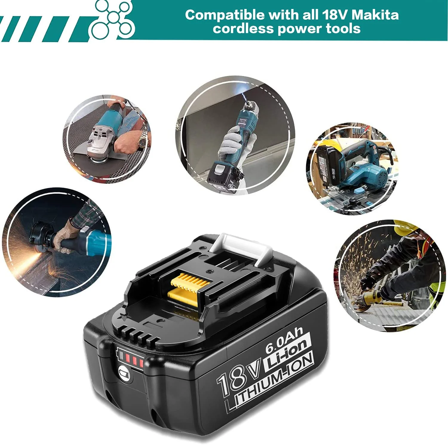 100% оригинал для Makita 18 в 6000 мАч перезаряжаемый аккумулятор для электроинструментов со светодиодом Li-Ion Замена LXT BL1860B BL1860 BL1850