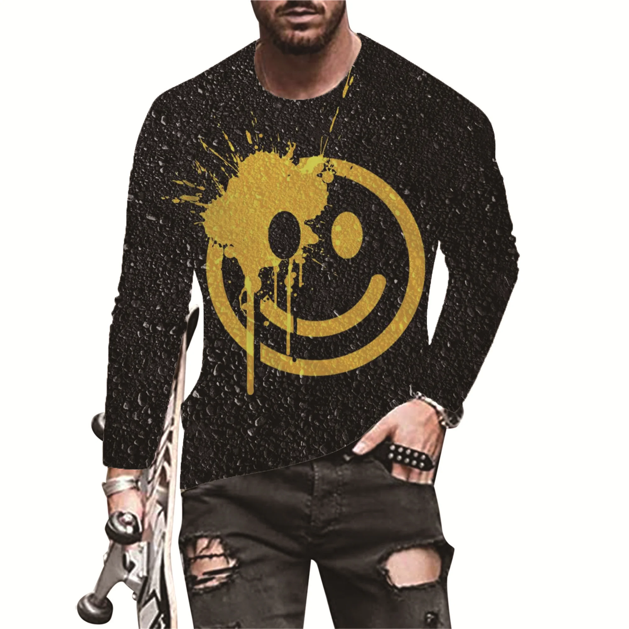 Новинка 2022 мужские повседневные спортивные футболки Smiley ele ts с 3D принтом уличные трендовые Футболки с длинным рукавом