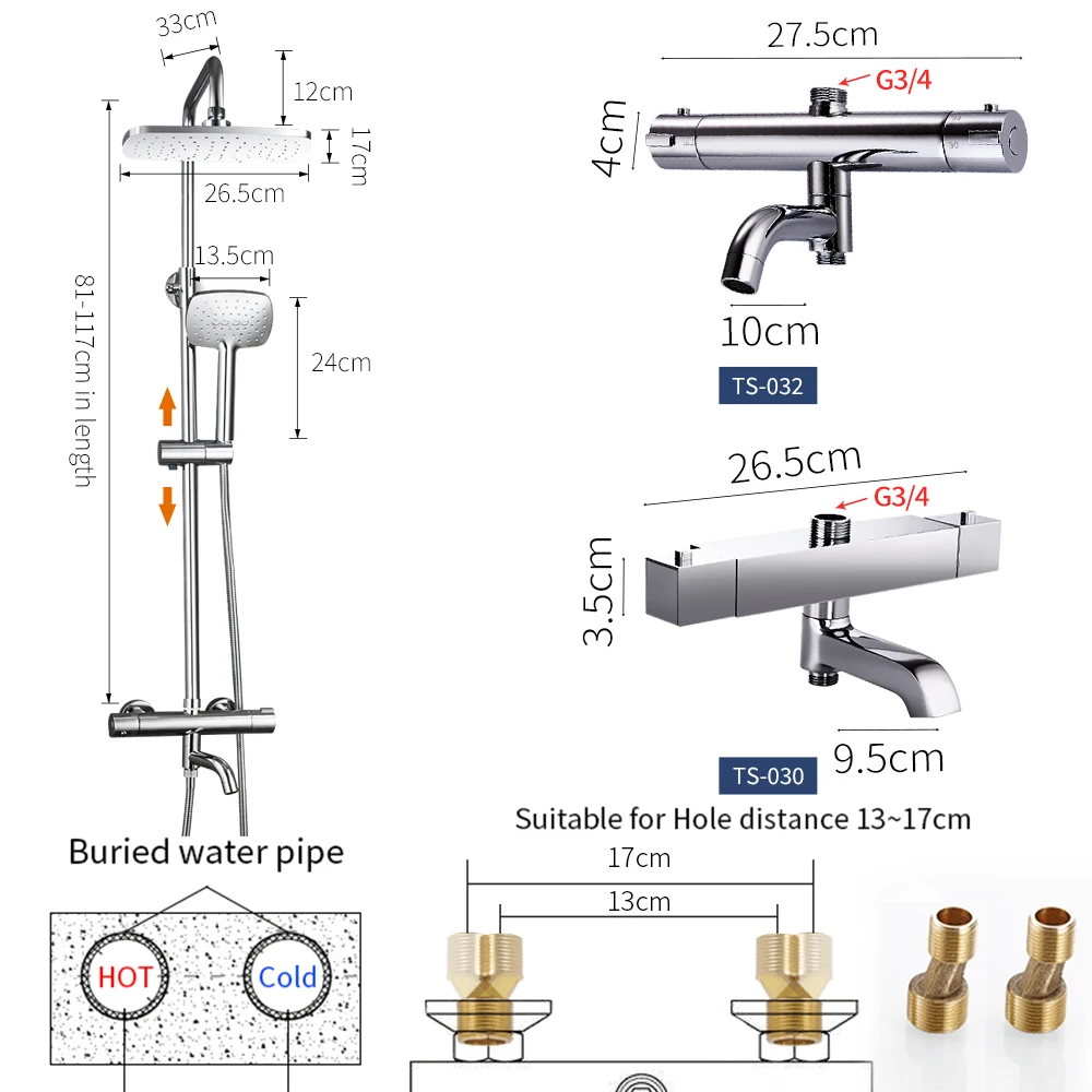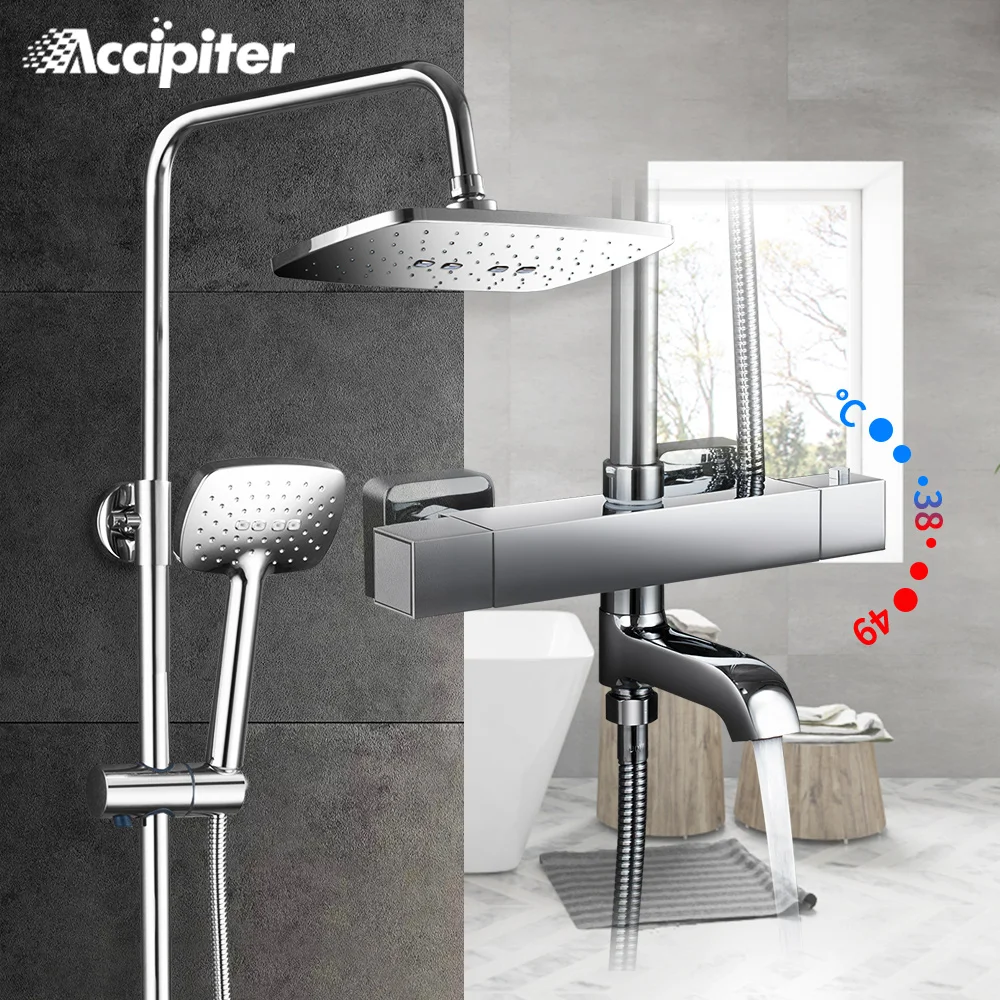 Смеситель для душа для ванной комнаты, термостатический смеситель для дождя, набор для душа, 3 режима выхода воды, настенный смеситель для ванны, хром