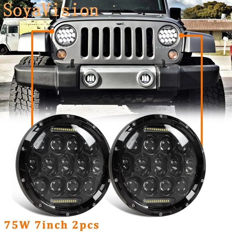 Ходовые огни 75 Вт 50 Вт 40 Вт Автомобильный светодиодный H4 7 дюймов автомобильные аксессуары ангельские глазки H4 светодиодная фара для Lada Niva 4X4 Уаз Hunter Hummer