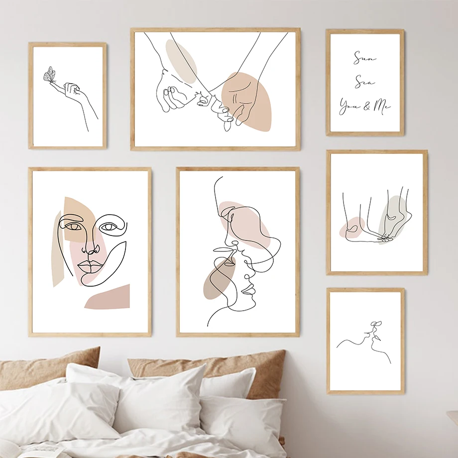 Абстрактная линия узор лица Тело Коралл настенная Картина на холсте...