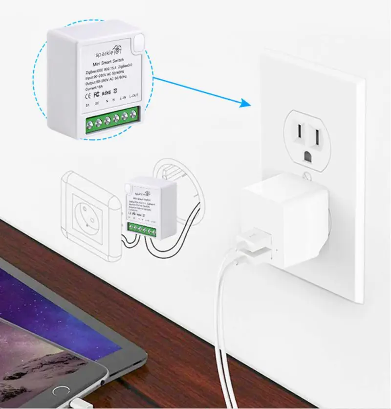 Умный мини-переключатель ZigBee 16A подходит для большего количества электрооборудования. Вы можете использовать смарт-переключатели на бытовую технику и светильник, чтобы вы могли включить или выключить устройство на свой мобильный телефон. Он может быть приурочен, Голосовое управление (Alexa, Google assistant), а также могут быть созданы умные сцены. Мини-переключатель может поместить смарт-переключатель в кассету, поэтому его не нужно размещать за лампой-светильник. Поддерживает три способа подключения, без переключателя/односторонний переключатель/двусторонний переключатель. (Требуется нейтральный провод).
