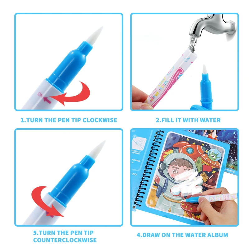 5. После использования книги для рисования вы можете протереть ее тряпкой, пока вода не высохнет, а затем закрыть картинку.