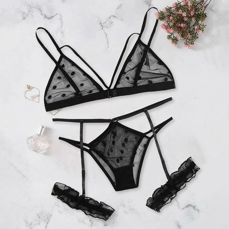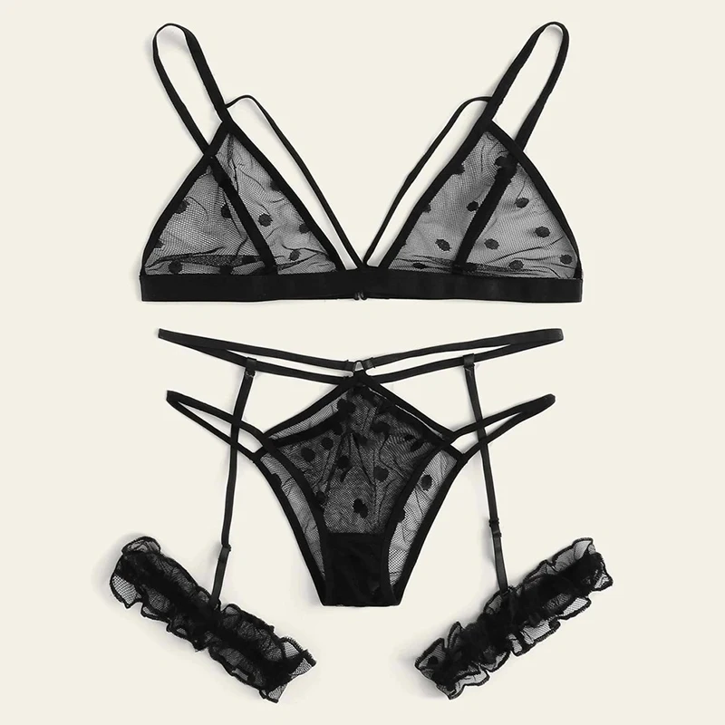 Женский комплект прозрачного нижнего белья большого размера, сексуальное кружевное нижнее белье, бесшовный бюстгальтер, стринги, подвязки, комплекты сексуального нижнего белья в горошек, эротические костюмы