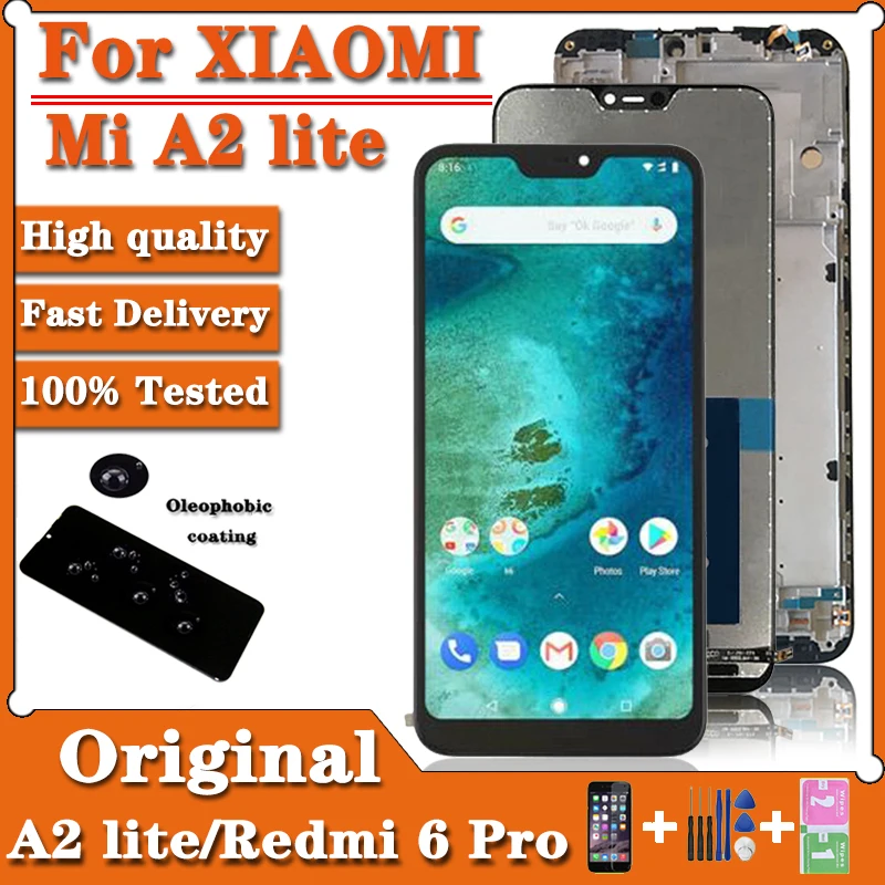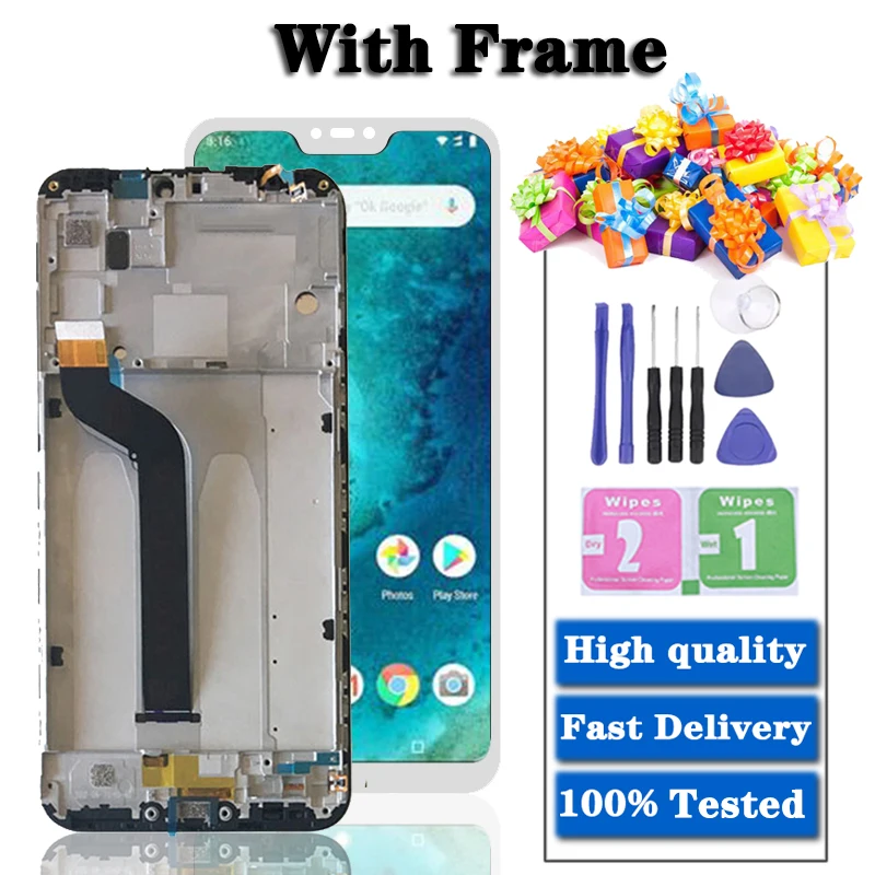 ЖК-дисплей 100% дюйма с сенсорным экраном и дигитайзером в сборе для Xiaomi Mi A2 Lite, Redmi 6 Pro + Датчик рамки Pantalla, новинка 5,84