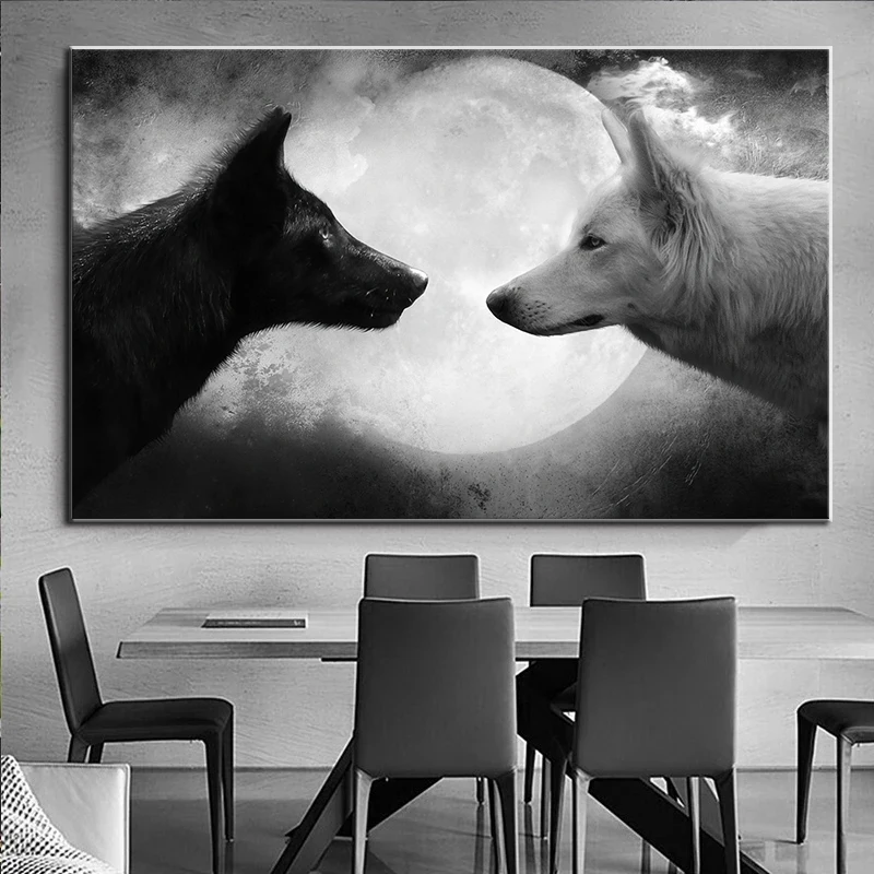 Черно-белая картина крутой волк на холсте современный постер с животными и оформление интерьера гостиной