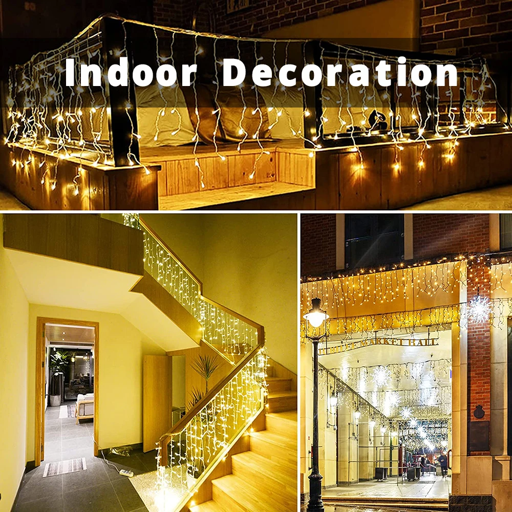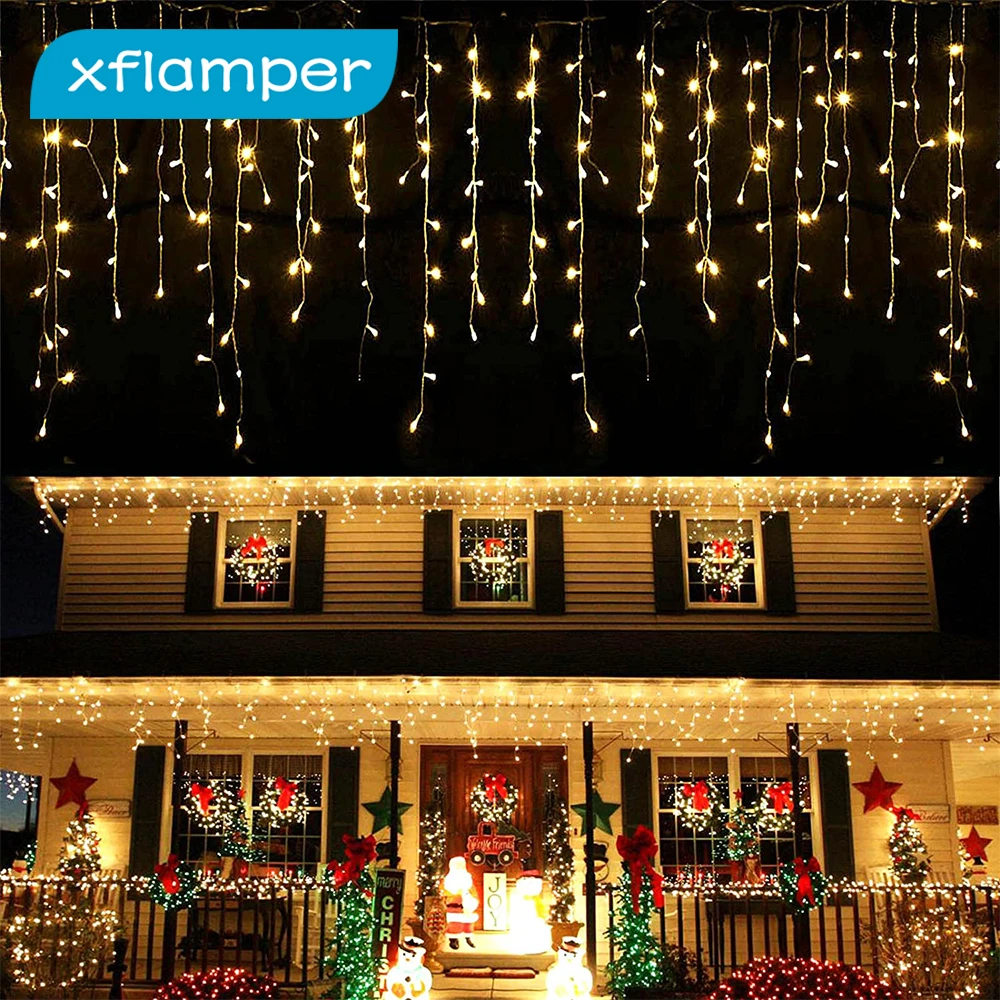 СВЕТОДИОДНАЯ Гирлянда-сосулька XFLAMPER 4 м, 8 режимов освещения, свисающая на 0,4-0,6 м, водонепроницаемая Гирлянда-занавеска, украшение на свадьбу и Рождество