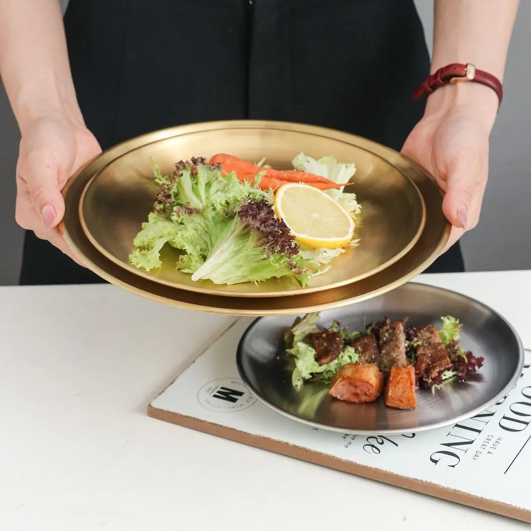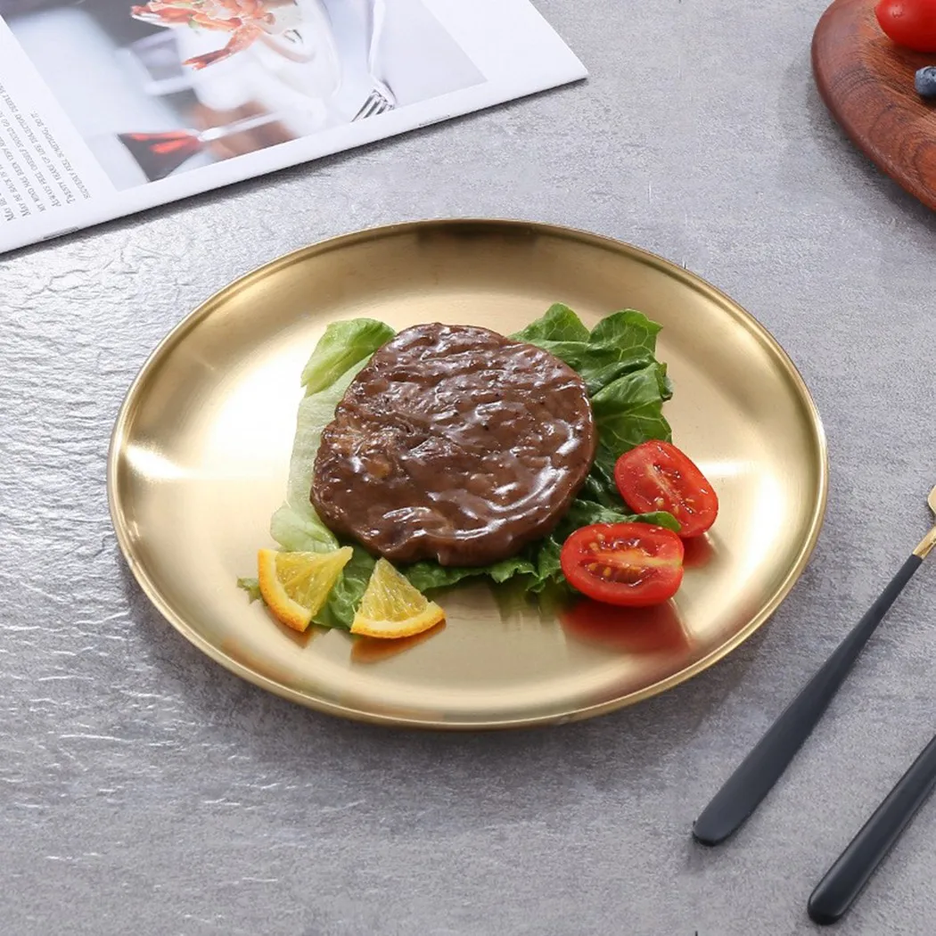 1 шт. тарелка из нержавеющей стали Северной Европы золотого цвета, круглая тарелка с фруктами, десерт, столовая посуда для кухни, домашний декор