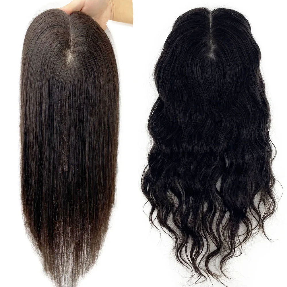 Волнистые прямые волосы на шелковой основе 15 х16 см, Топпер, натуральные человеческие волосы, парик на заколке, кусочки волос для женщин, естественная линия волос, Плотность 130
