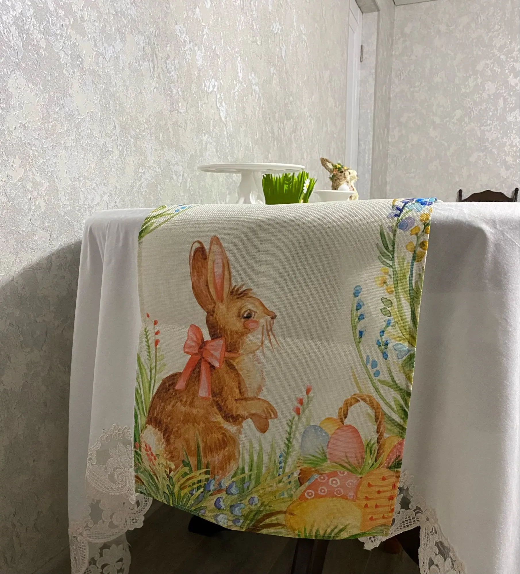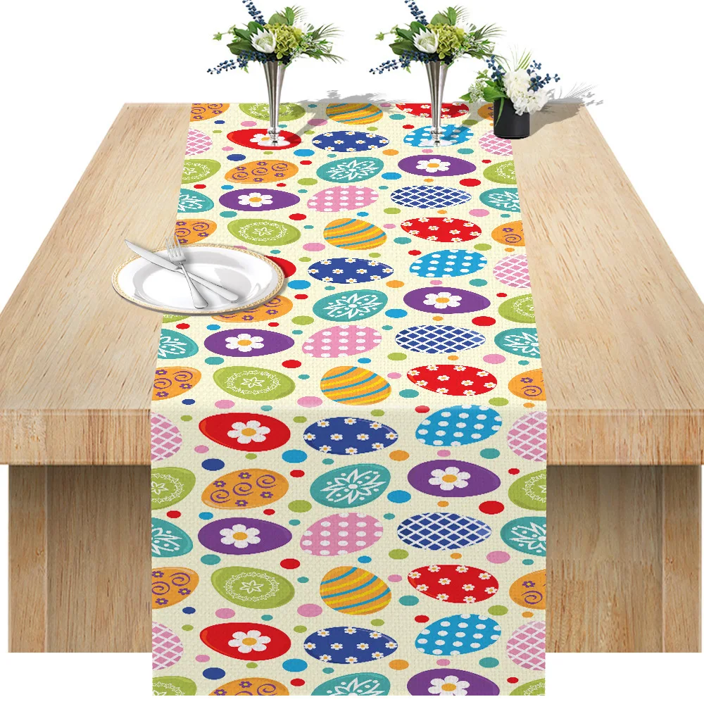 Пасхальная настольная дорожка с принтом кролика, украшение для стола для пасхальвечерние, кухонная льняная скатерть с принтом на Пасхальный день
