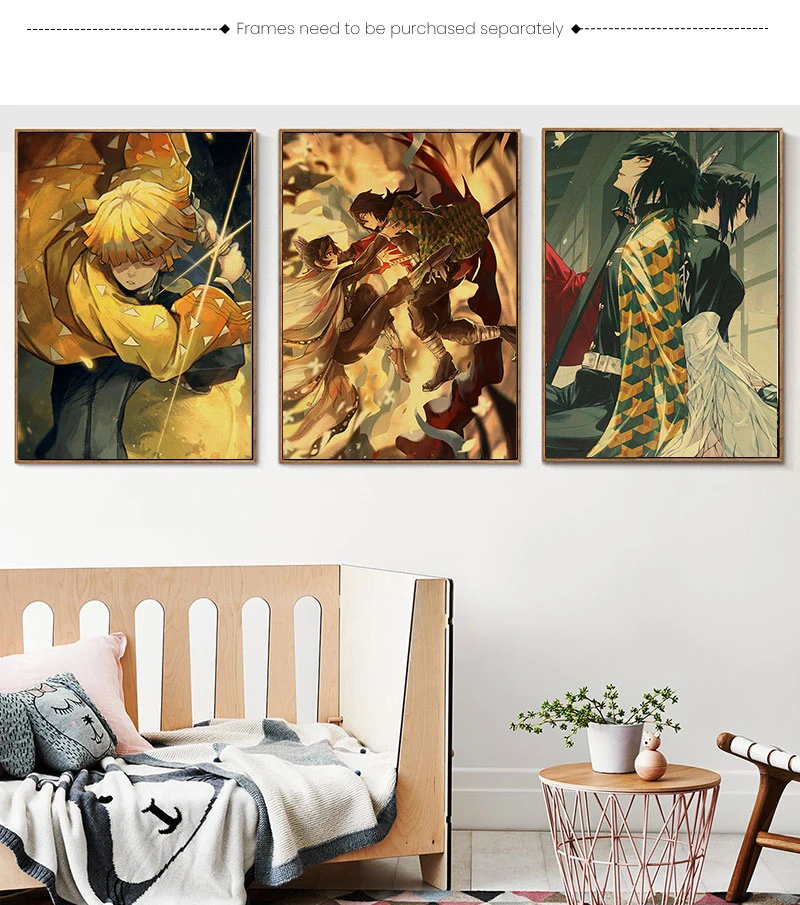 Плакат с рассекающим демонов киметсу No Yaiba, Шелковый материал, высокое качество, Hd печать, плакат, украшение для дома, художественная анимация, Настенная Наклейка
