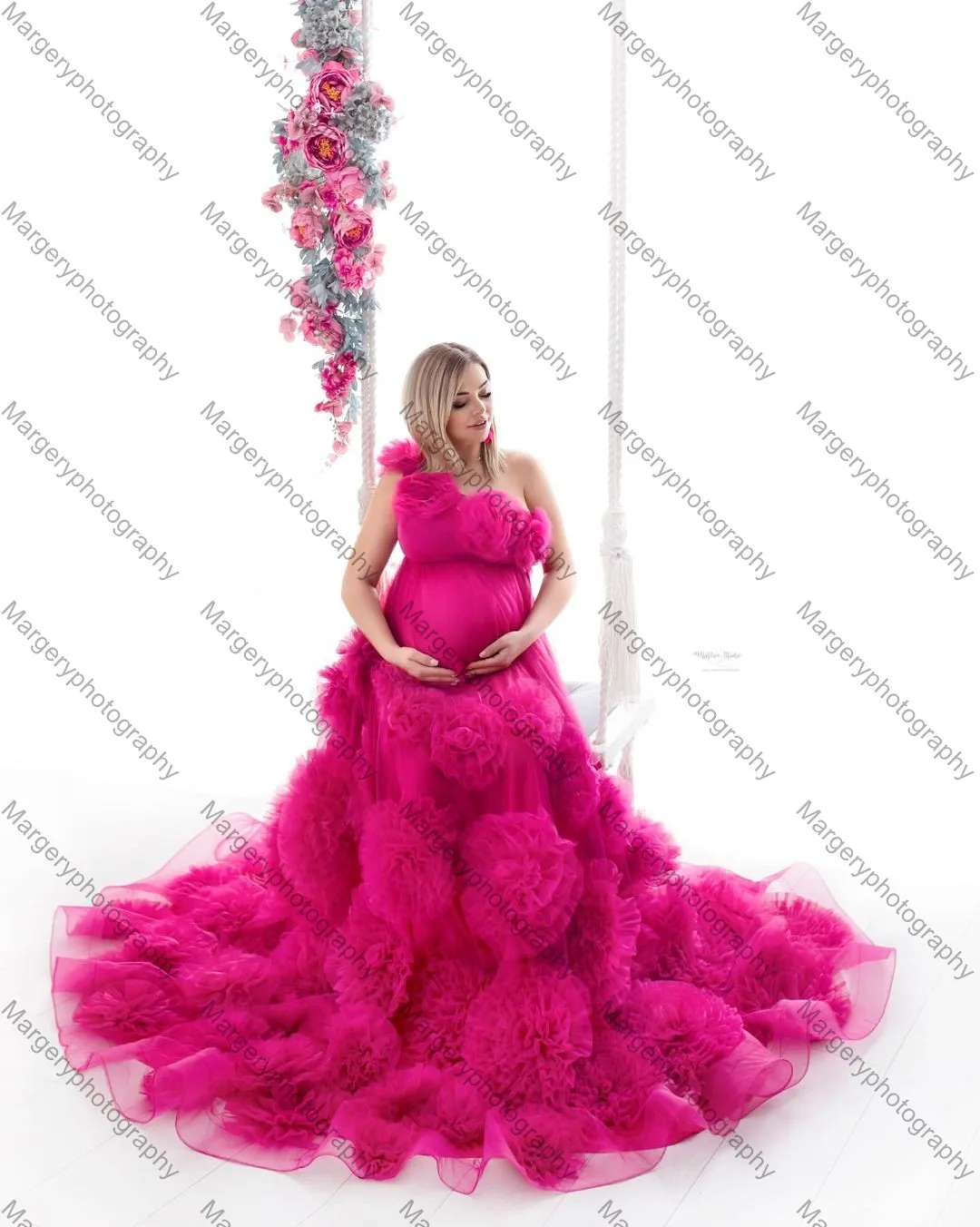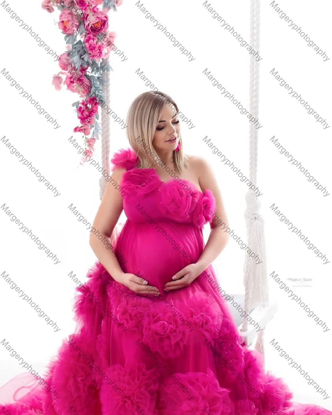 Очаровательные фатиновые платья фуксии для беременных для фотосъемк...