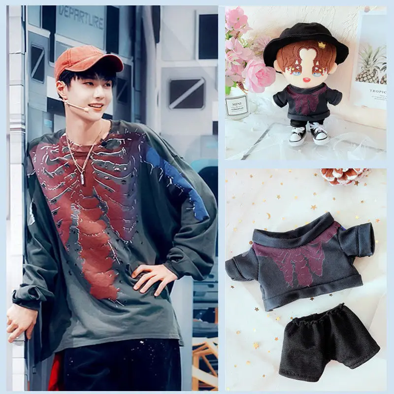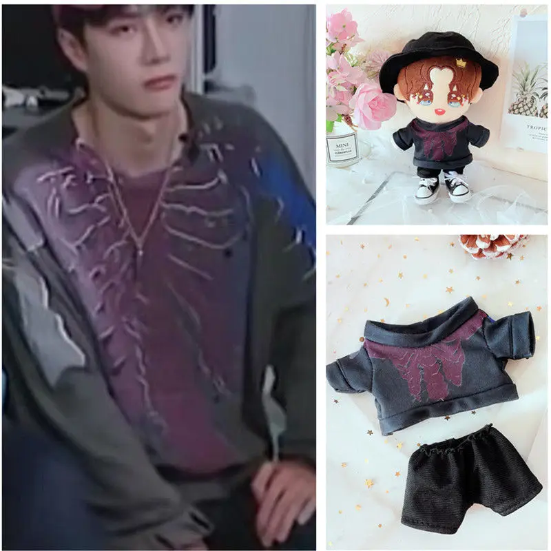 Неразобранная кукла Lan Wangji Luo Yang, актер Ван ибо, кавайная плюшевая хлопковая кукла, сменная одежда, черная футболка с принтом, штаны, мягкая игрушка