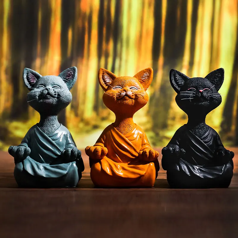 Причудливая статуэтка Будды, кошки, статуэтка для медитации, йоги, счастливая фотография, скульптуры для улицы, сада, маленькие статуэтки монахов