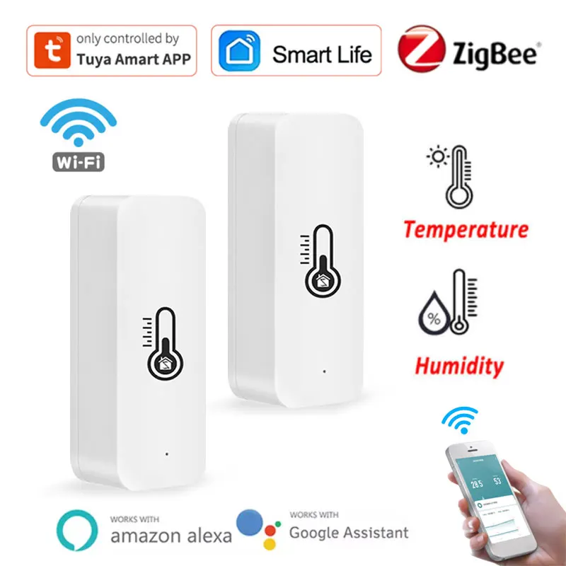Умный датчик температуры и влажности Wi-FiZigBee Tuya, работает с умным домом на батарейках, работает с Alexa Google Home