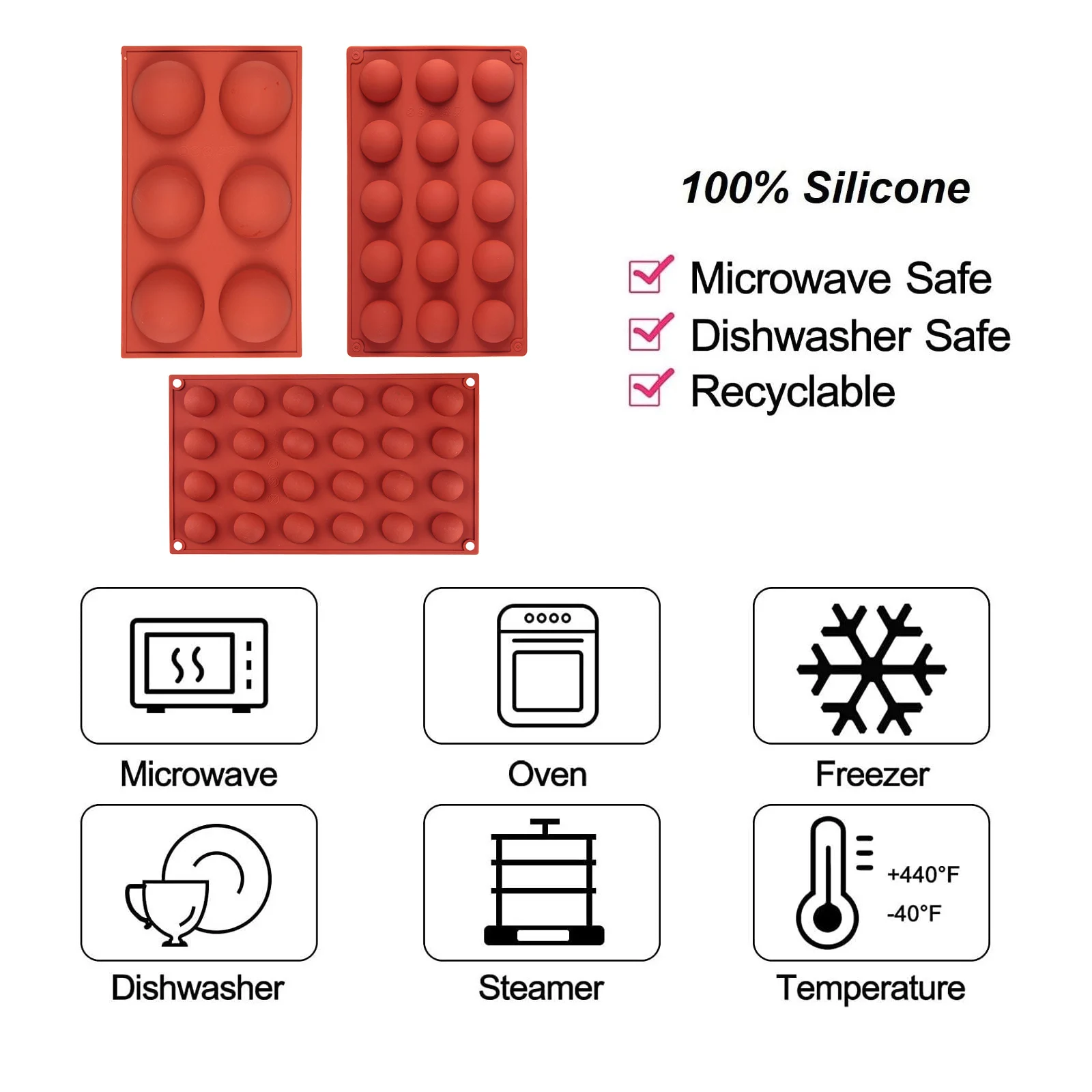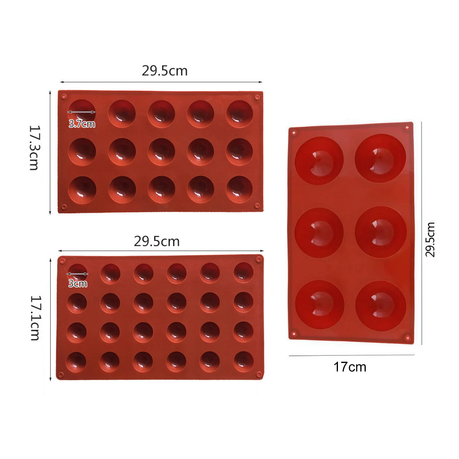 Форма для шоколада, 3 предмета в комплекте полу сферы силиконовые формы для выпечки для приготовления шоколада бомба/торта/желе/Мусс/мыло ручной работы, антипригарная форма для торта и печенья, в том числе 6 / 15 / 24 Отверстия-теплостойкий