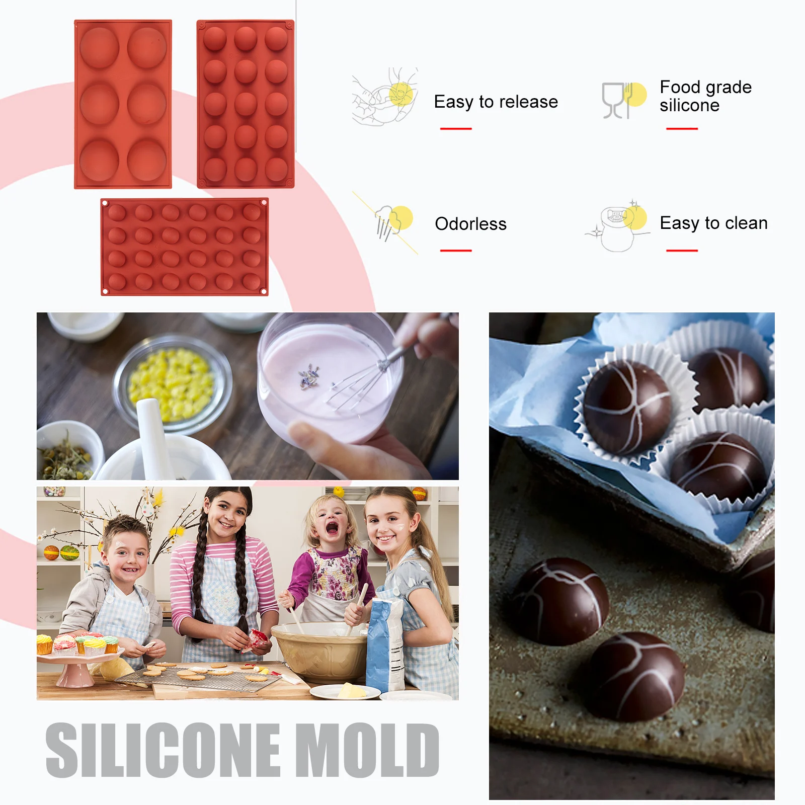 Форма для шоколада, 3 упаковки, полусферические силиконовые формы для выпечки, термостойкая силиконовая форма сделай сам для шоколада ручной работы, форма для кухни