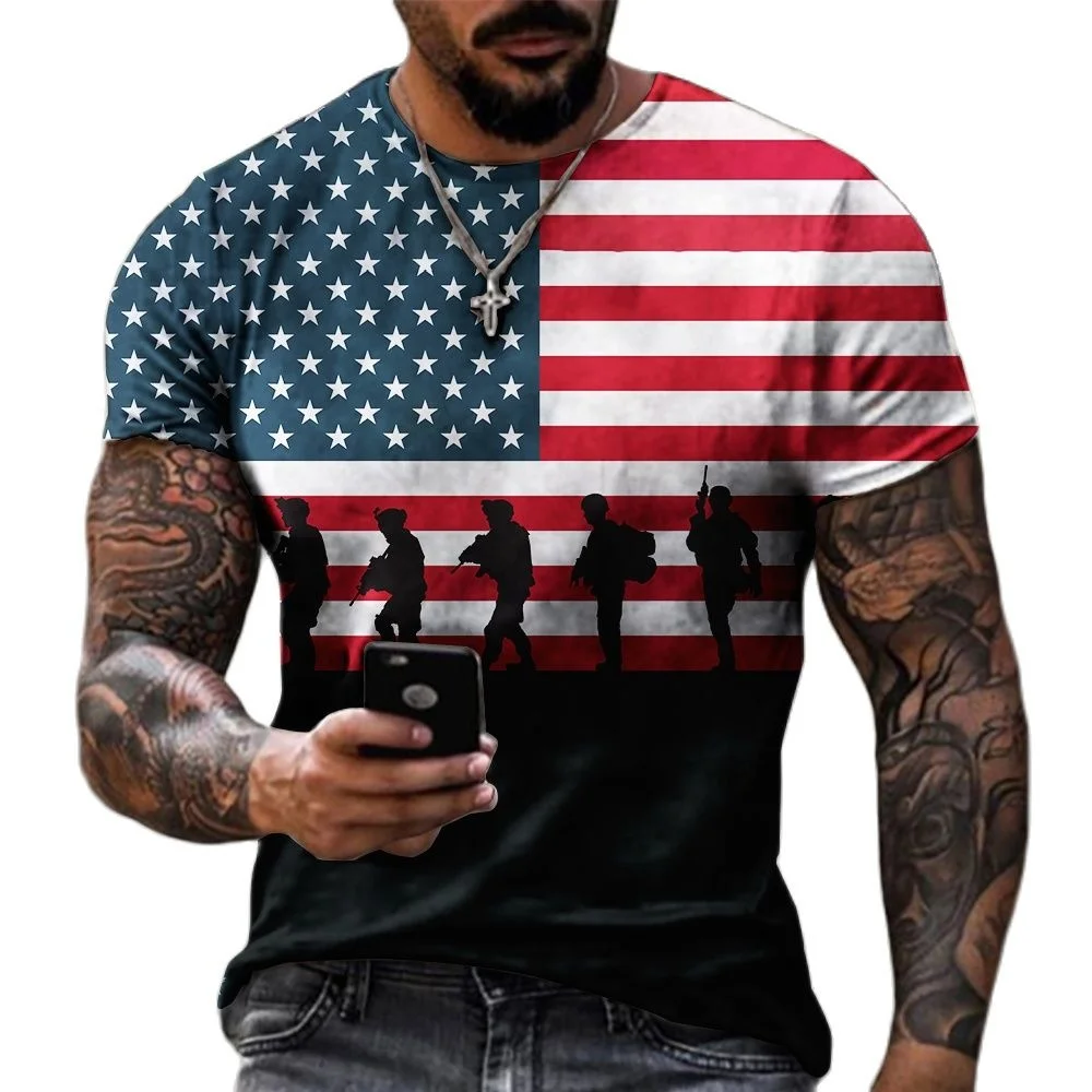 Рубашка 3-D мужская с коротким рукавом, дышащая, с американским флагом, одежда для фитнеса, топы размером 6xl