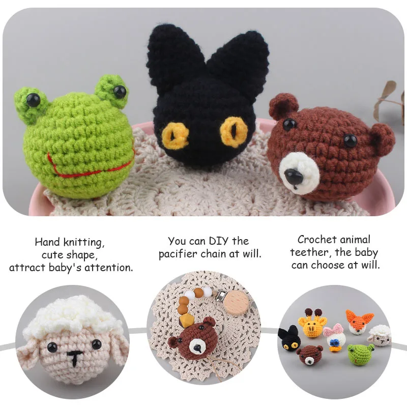 Coskiss, 1 шт., ручная работа, вязание крючком, животное, мультяшная голова, детское украшение для прорезывания зубов, сделай сам, зажим для соски, цепочка, аксессуары, игрушка в подарок