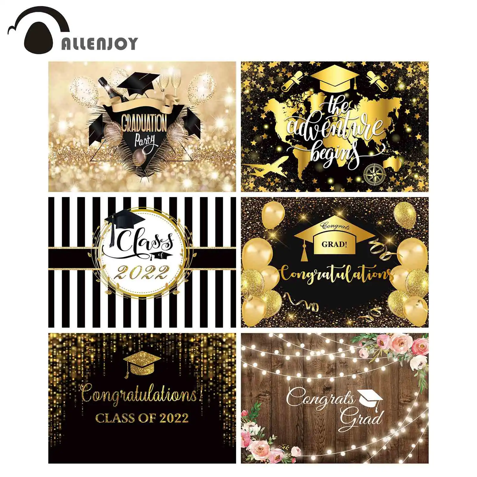 Allenjoy поздравления Выпускной фон Золотая Кепка блестящий шар класс град 2022 Вечерние Декорации баннер фото стенд