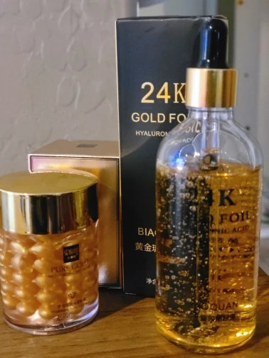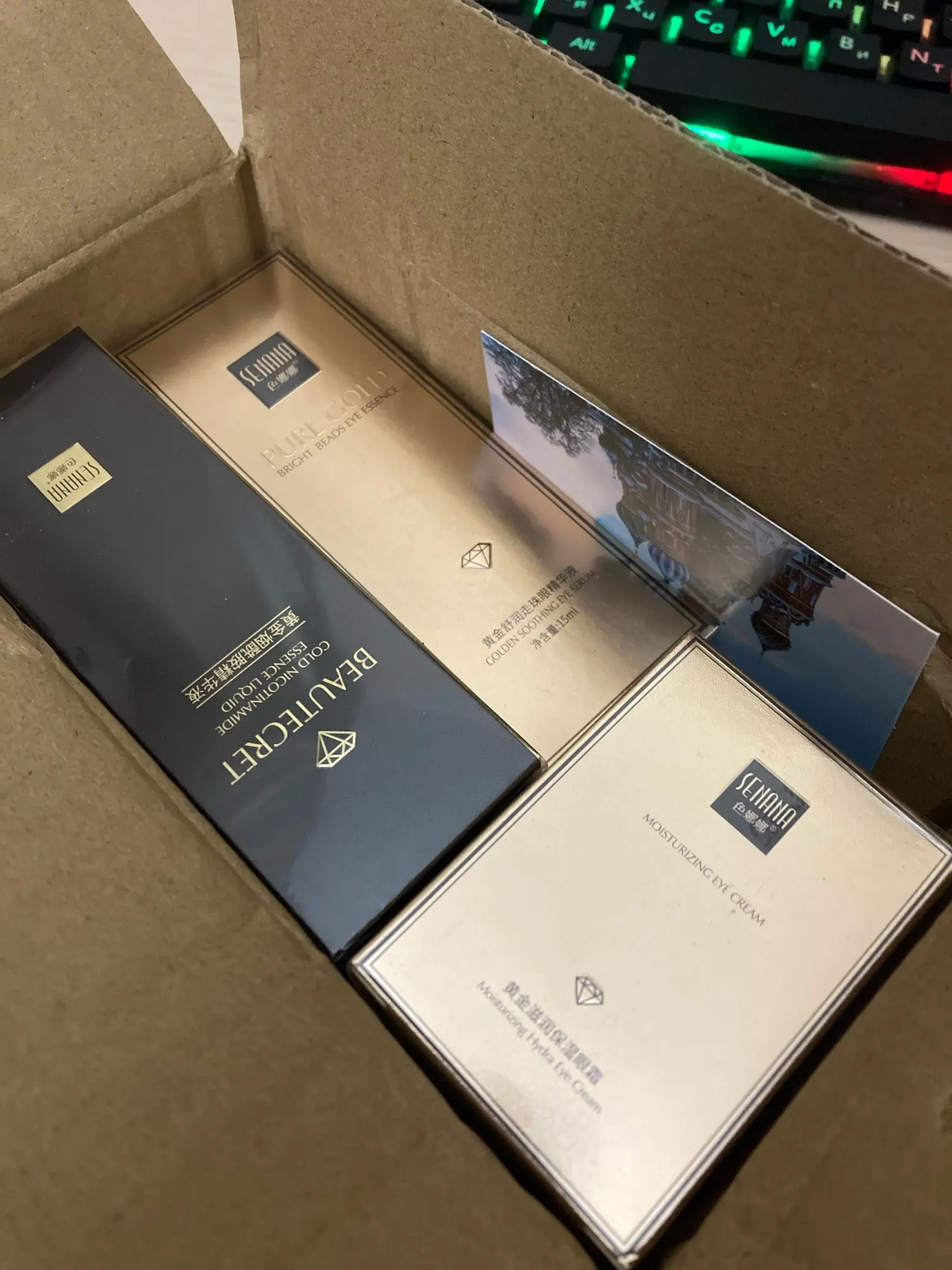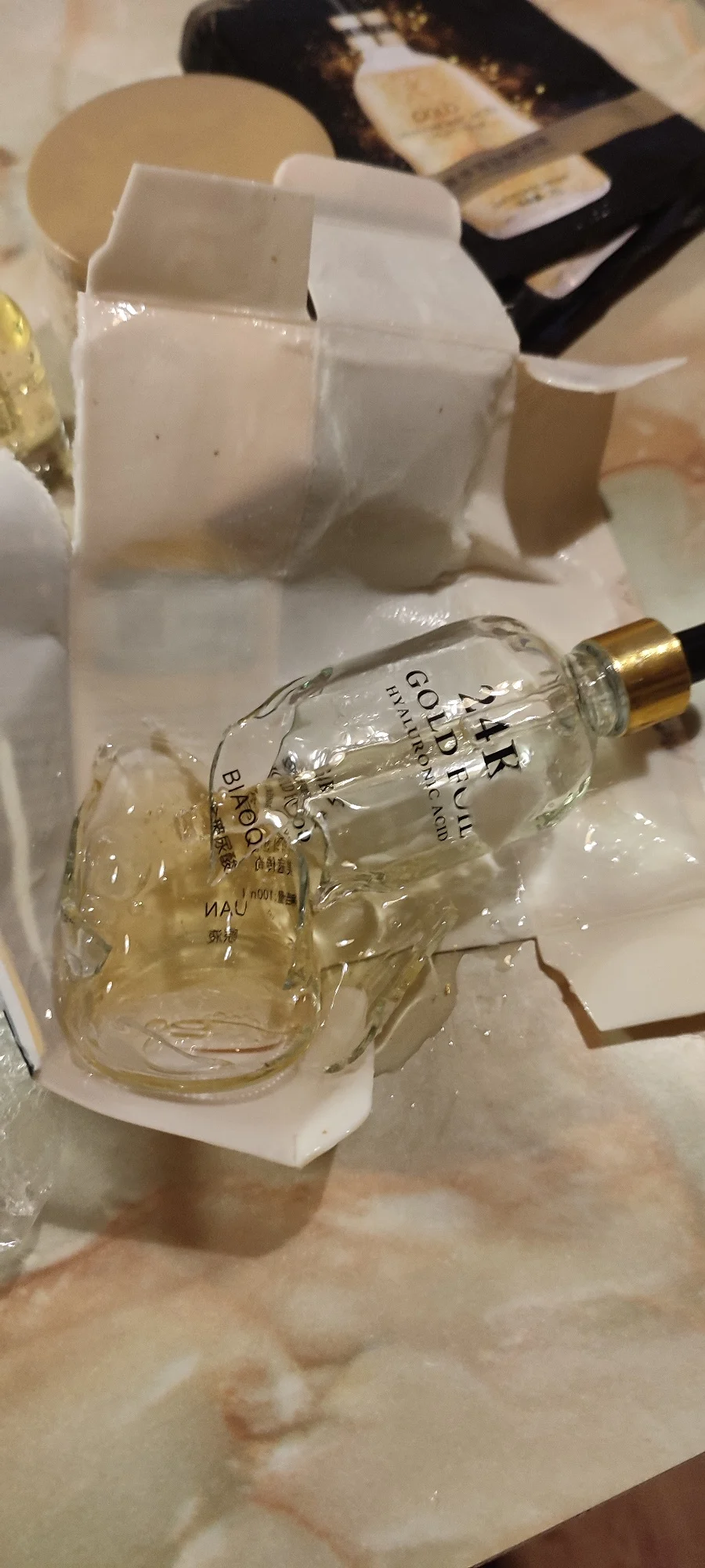 Пришло за месяц , упаковано норм, но...В большой бутылке 24К недолив!!! коробка сухая и чистая, значит недолили на месте . В маленькой бутылке х.з. что...О ней не слова, пахнет химией, пробовать стрёмно...Остальное вроде норм. Пользы и эффекта пока не вижу- надо использовать хот, бы неделю! Потом дополню отзыв... Оценки снижены за недолив и общение продавца ... с третьего раза ответил.