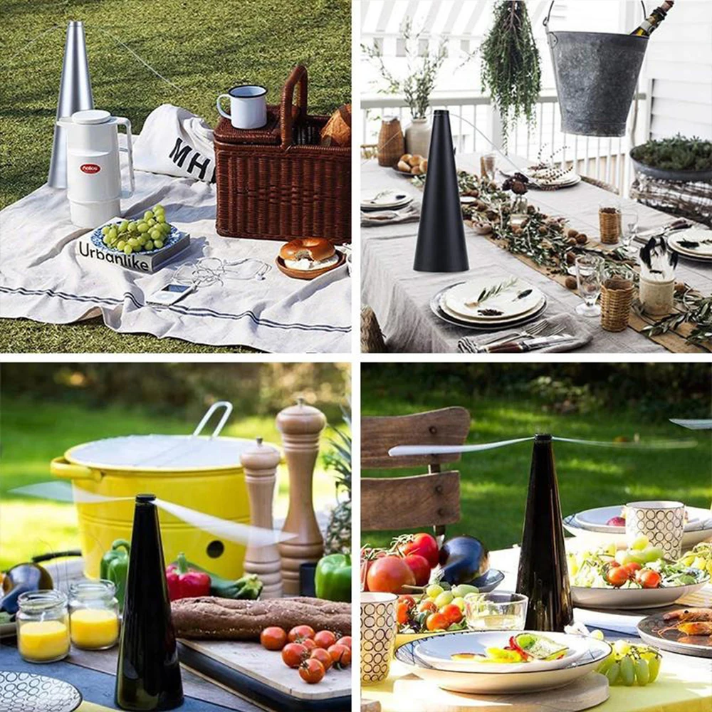 Портативный конусный Многофункциональный Отпугиватель летучих мышей, автоматические лопасти вентилятора с защитой от насекомых, вращение лопастей вентилятора и Светоотражающие Полоски для отпугивания мух и других мелких насекомых, он очень подходит для отпугивателя летучих мышей для защиты пищевых продуктов