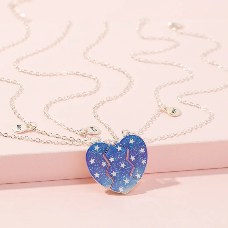 3 шт.компл. светящиеся ожерелья Best Friends ожерелья с сердцем и звездами Best Friend BFF магнитные ювелирные изделия подарок для женщин и девочек