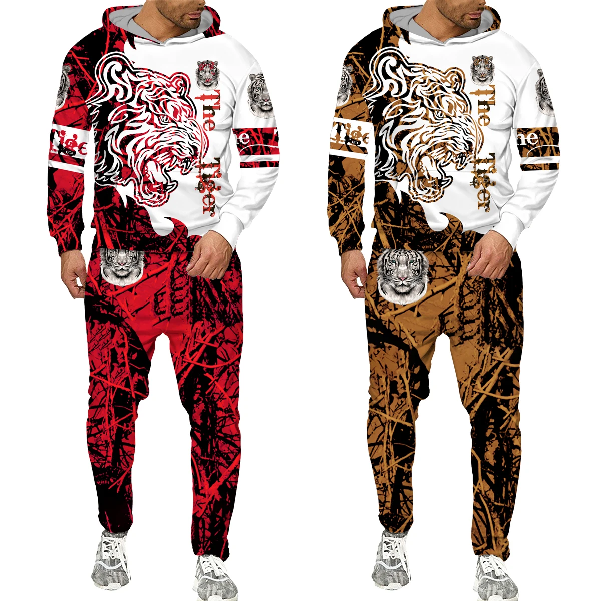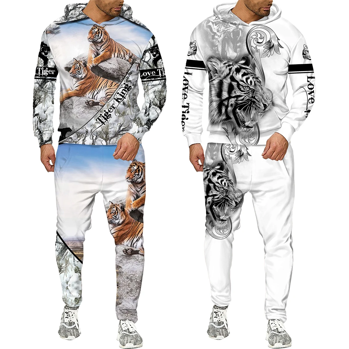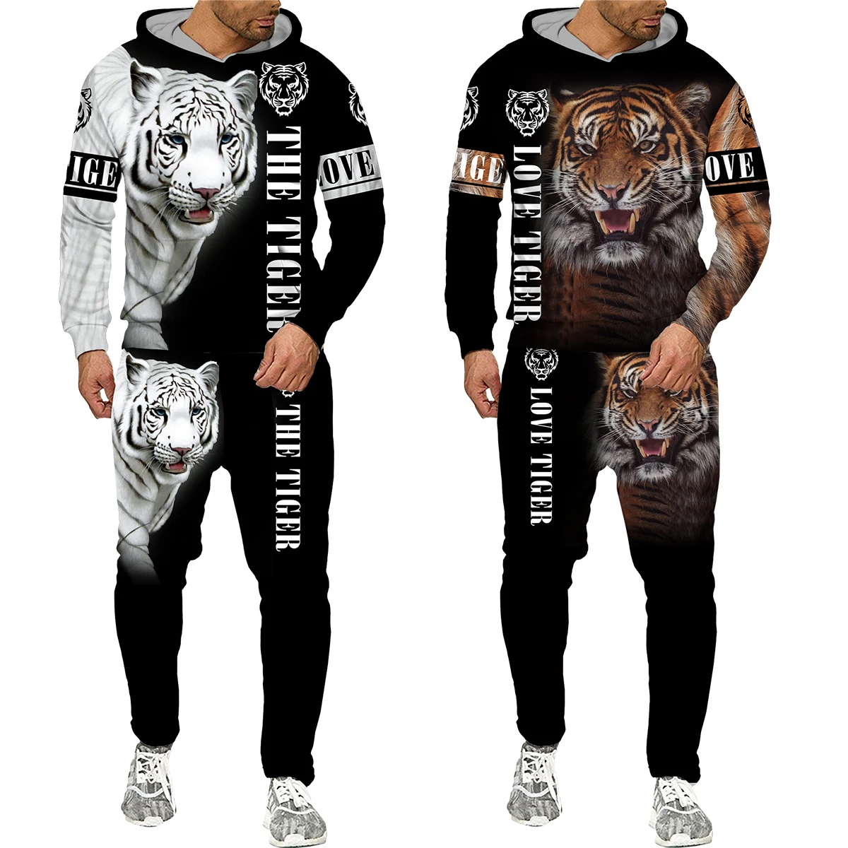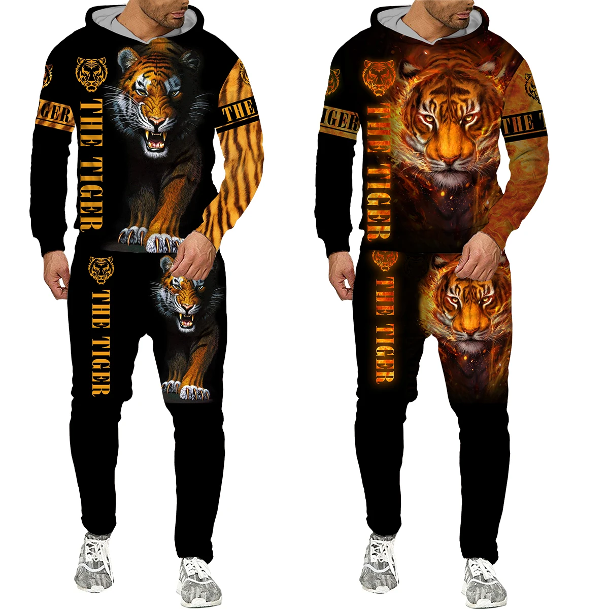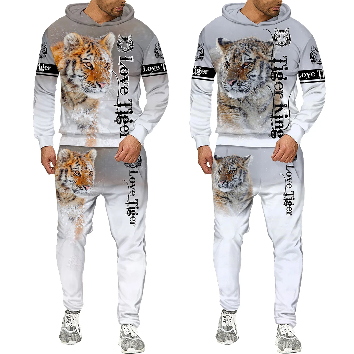Мужской худи в виде тигра комплект с длинным рукавом из полиэстера и хлопка, теплый зимний костюм для тренировок в помещении с 3D рисунком животных
