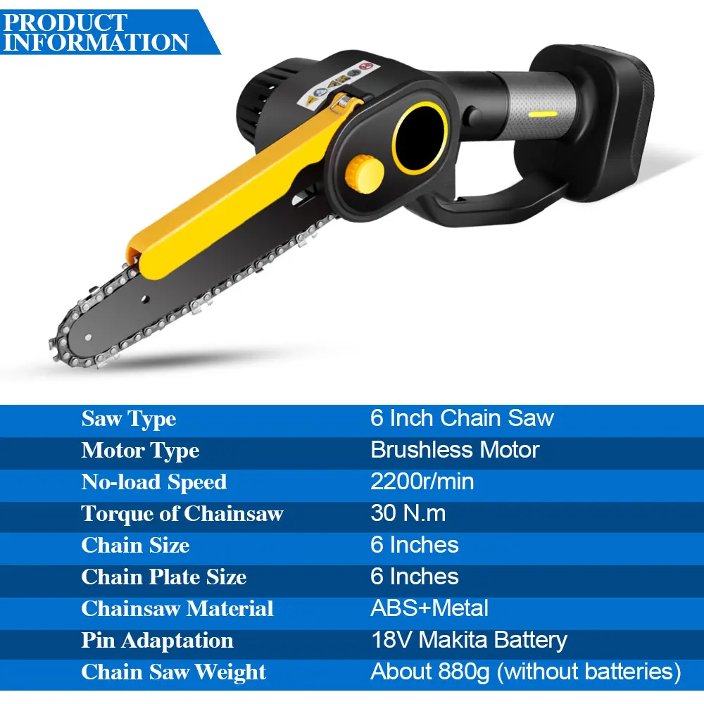 Бесщеточная Электрическая цепная пила, Беспроводная пила для обрезки, 6 дюймов, 30 нм, 2200 обмин, для Makita, 18 в аккумулятор, деревообрабатывающий режущий электроинструмент
