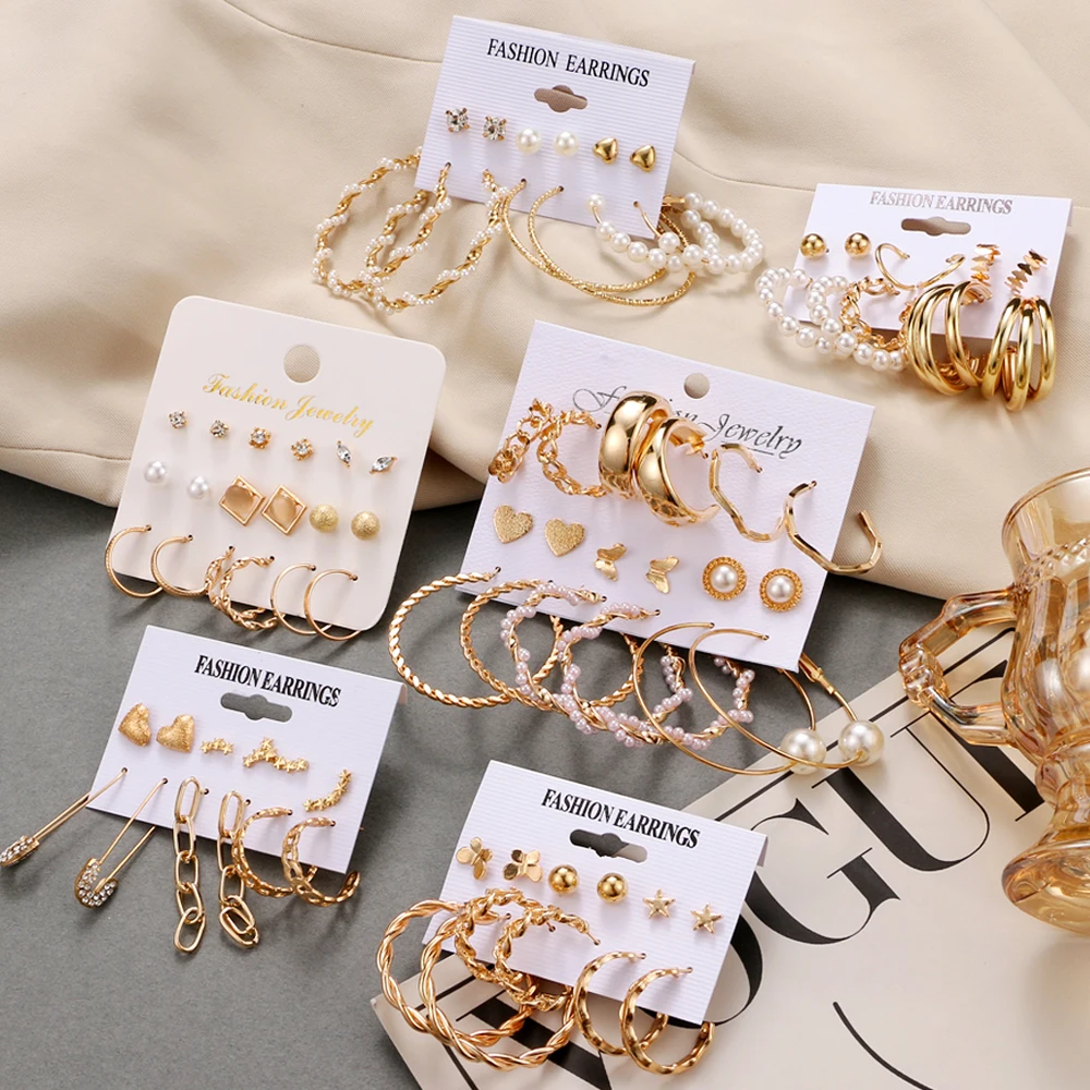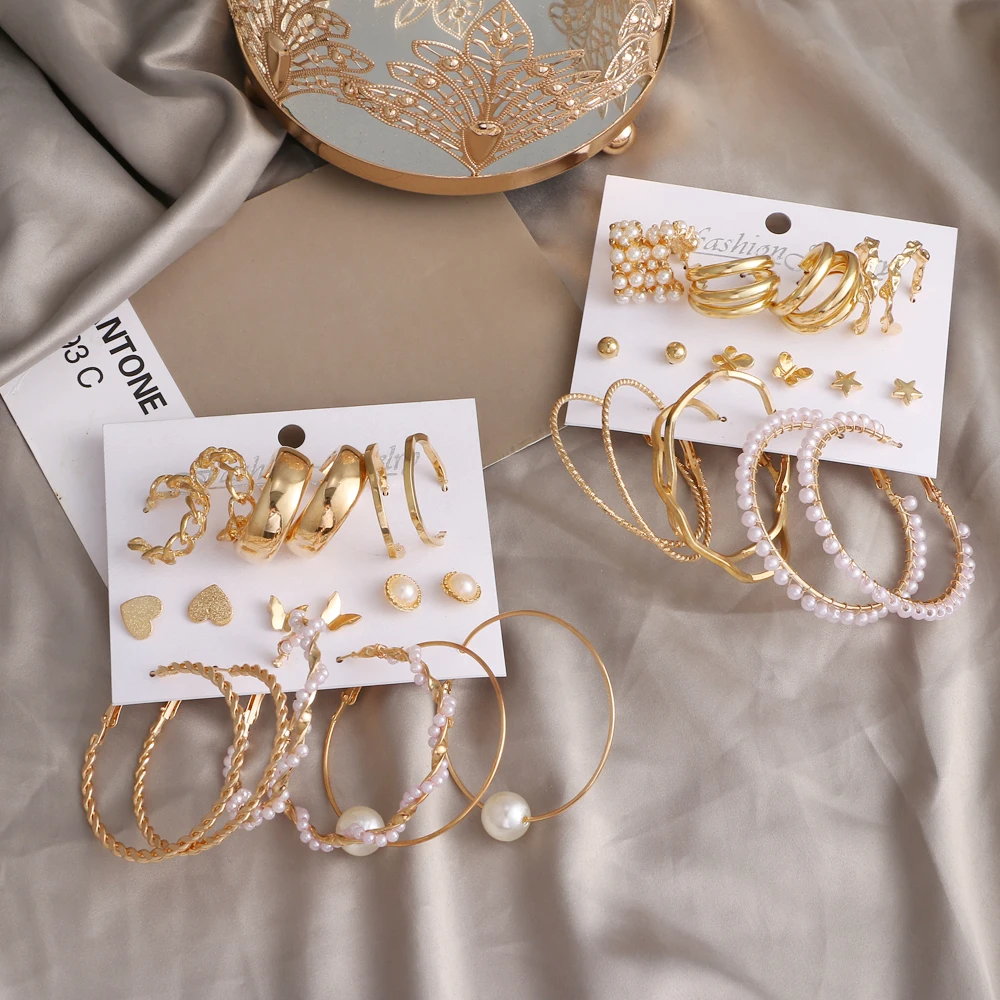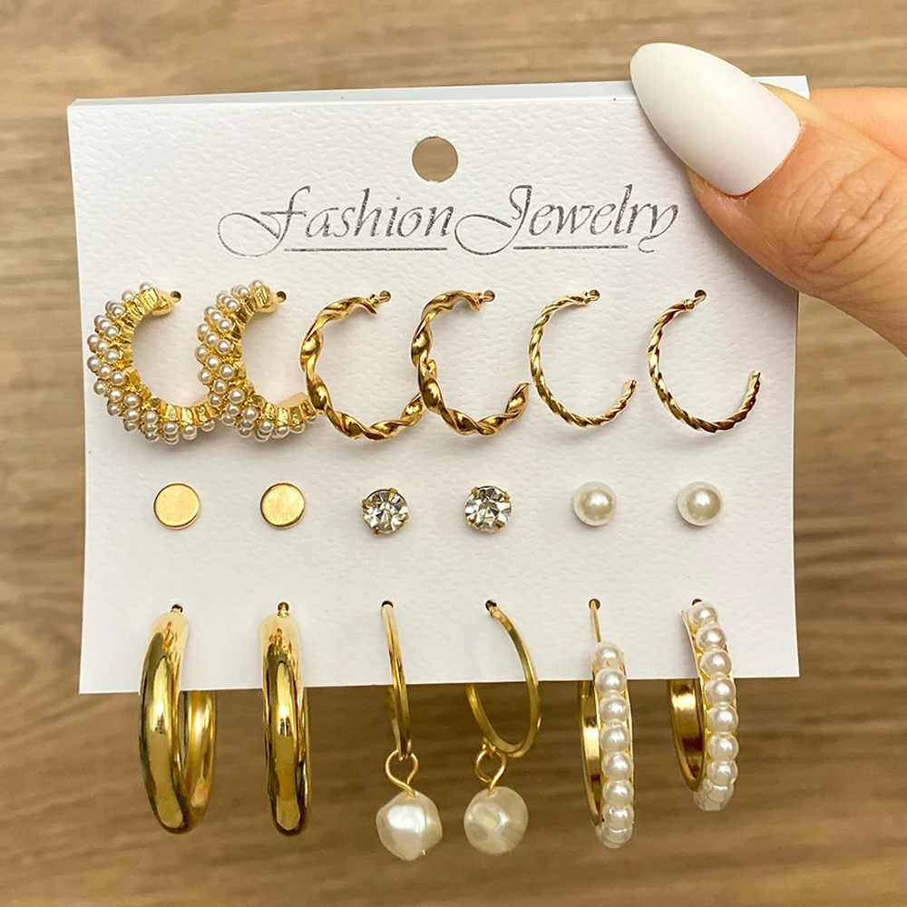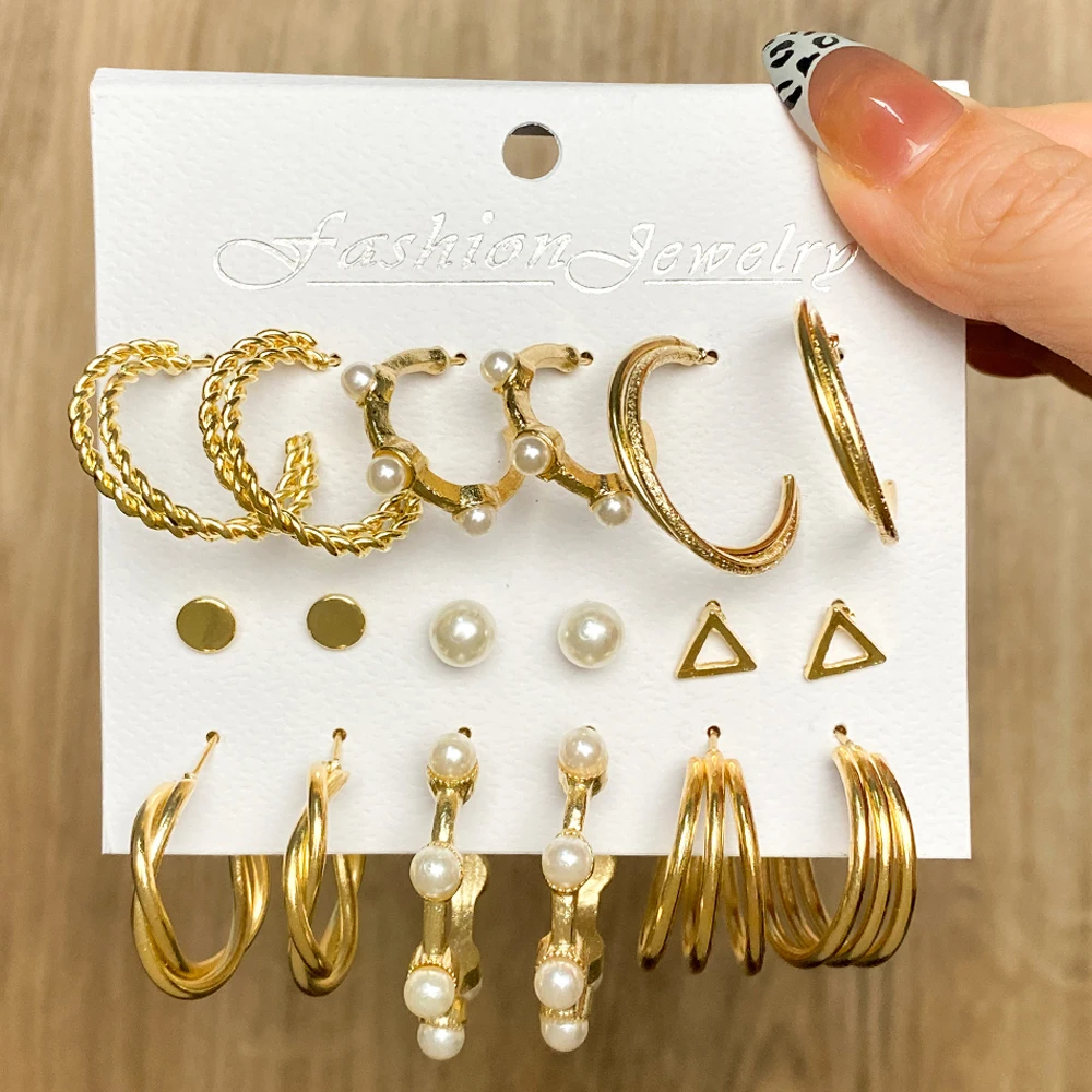 FNIO Модные серьги-кольца с жемчугом, набор для женщин, геометрические, золотые, металлические, круглые, серьги-кольца Brincos 2022, трендовые ювелирные изделия, подарок