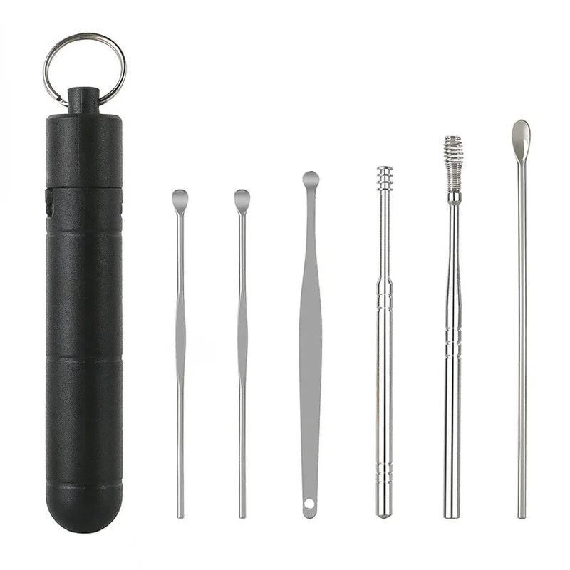 Очиститель для ушей из нержавеющей стали, инструмент для удаления ушного воска, приспособление для удаления ушного воска из АБС-пластика, приспособление для удаления ушного воска, набор для очистки ушей с пружинной ложкой