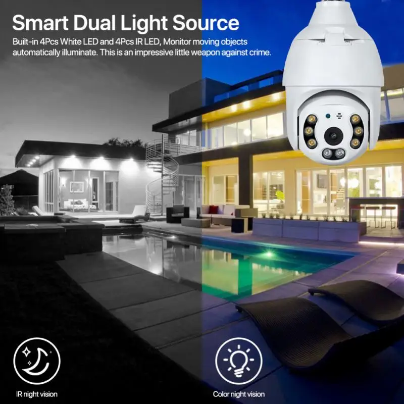 Камера видеонаблюдения с лампочками E27, полноцветная камера ночного видения с автоматическим отслеживанием людей, 4-кратным цифровым зумом, для помещений, монитор безопасности 2022