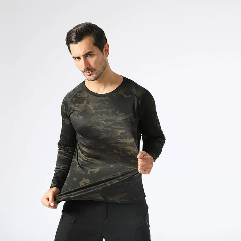 Тактические камуфляжные Футболки с длинным рукавом Мужские дышащие ...