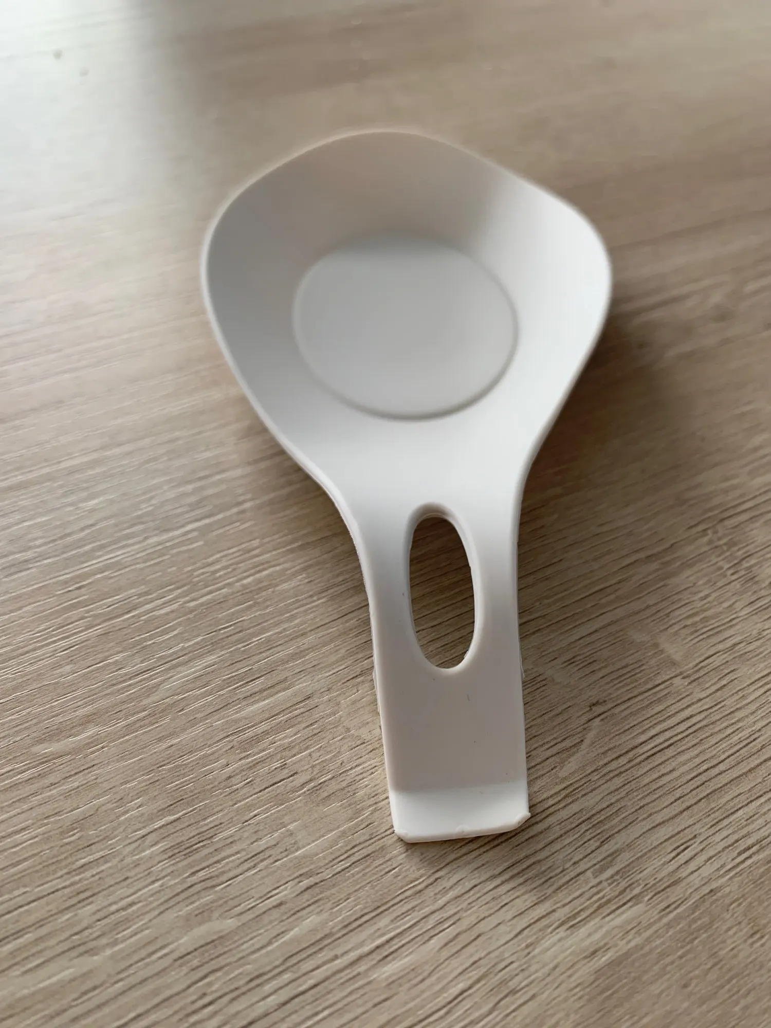 Интересная ложка. Очень удобно класть на нее кухонные принадлежности, плюс легко мыть. Короче, красиво и удобно. Спасибо продавцу. рекомендую.