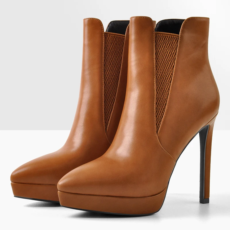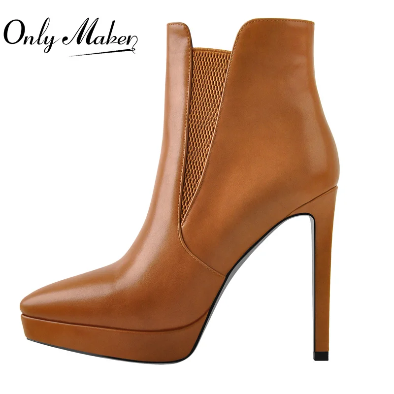 Onlymaker весенние коричневые ботильоны из искусственной кожи с острым носком на низкой платформе на тонком высоком каблуке лаконичные модные повседневные ботинки для зрелых