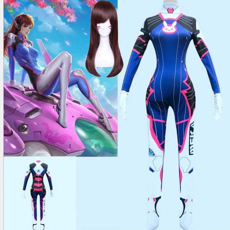 Женский костюм для косплея Dva из лайкры и спандекса с 3D принтом