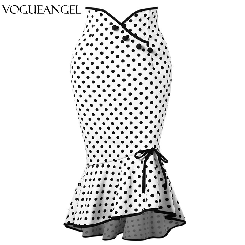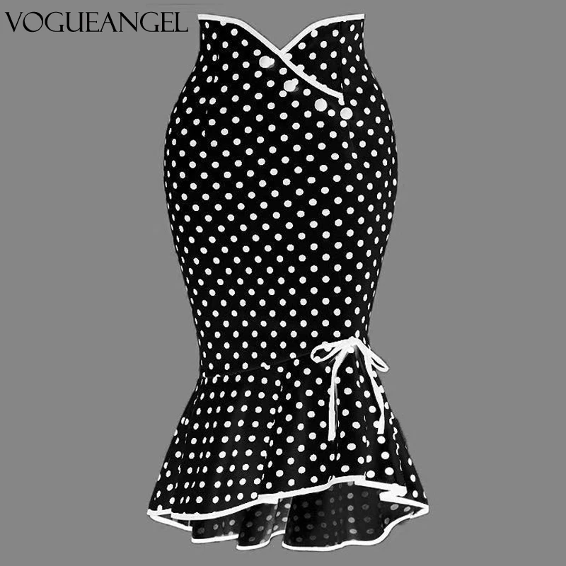 Юбка Женская Офисная в горошек, модная пикантная облегающая юбка-годе с завышенной талией, Офисная с оборками, лето