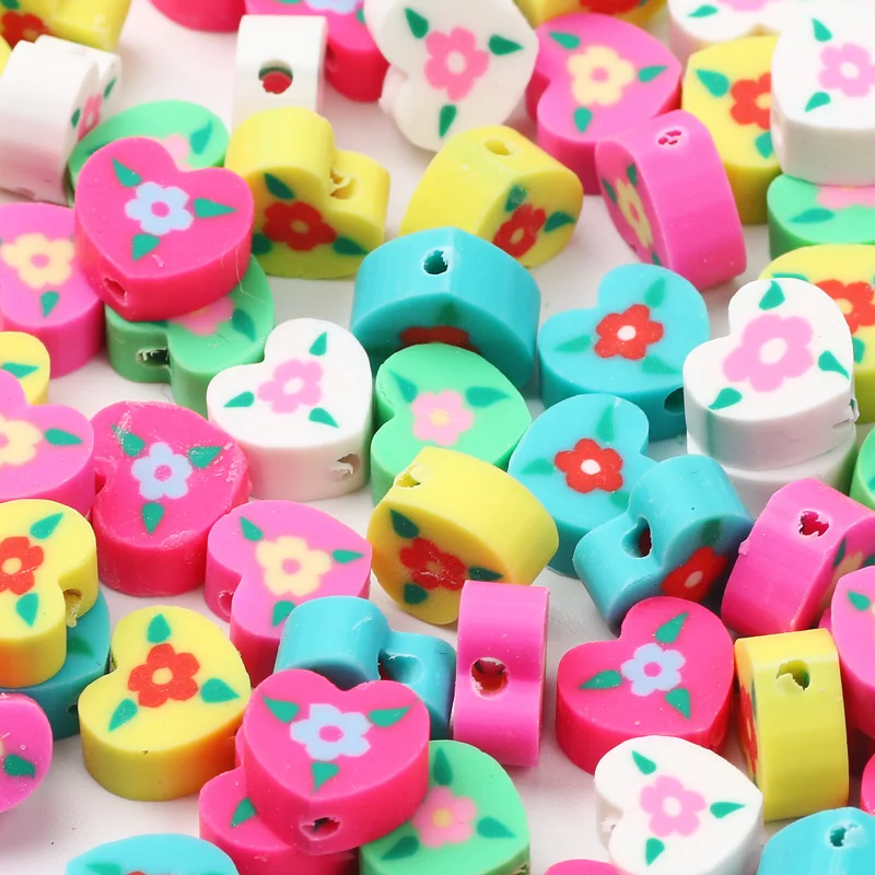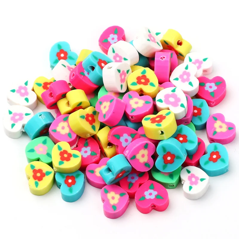 Бусины из полимерной глины, Смешанные Цветочные бусины в форме сердца, свободные бусины-разделители, аксессуары ручной работы для браслета, 2050100 шт.