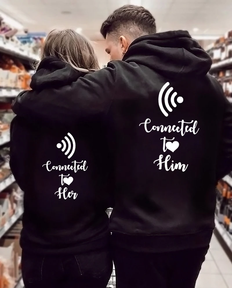Парные толстовки с капюшоном и принтом Wi-Fi для мужчин и женщин, толстовки с капюшоном с длинным рукавом для влюбленных, толстовка с капюшоном